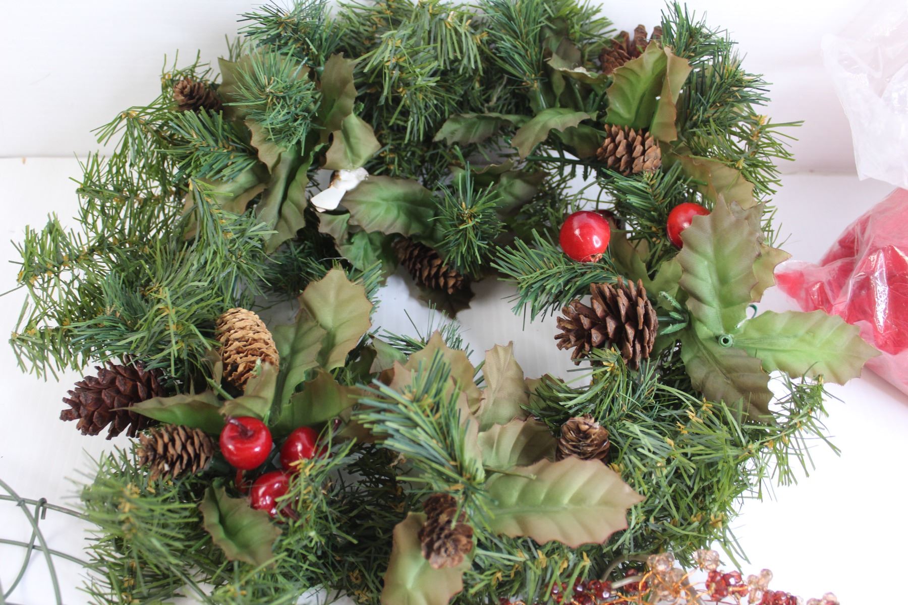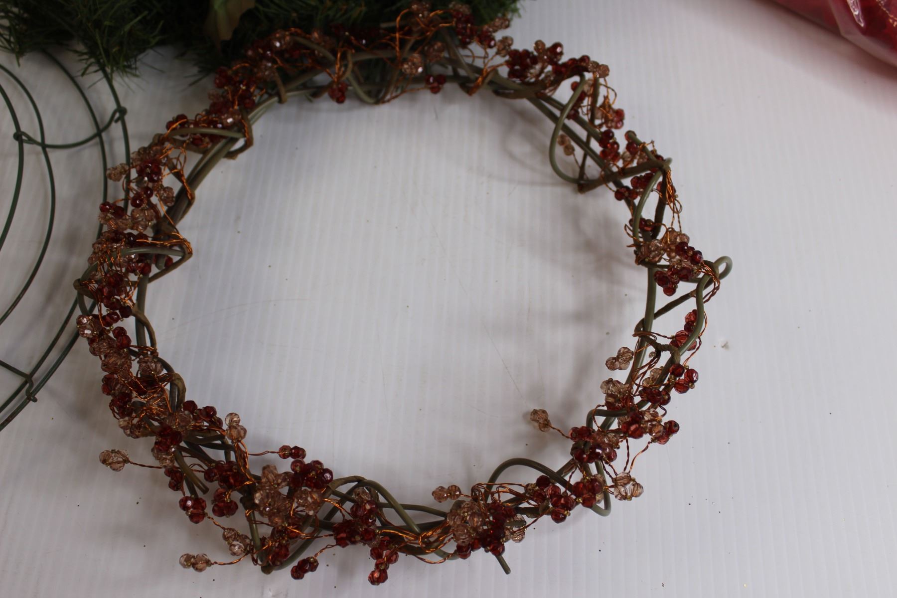 Red Feather Boa, (2) Wreaths, Misc.