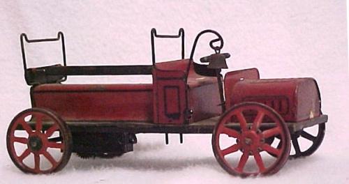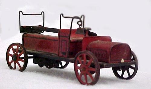 Red Fire Truck; tin wind-up toy, no maker's mark,