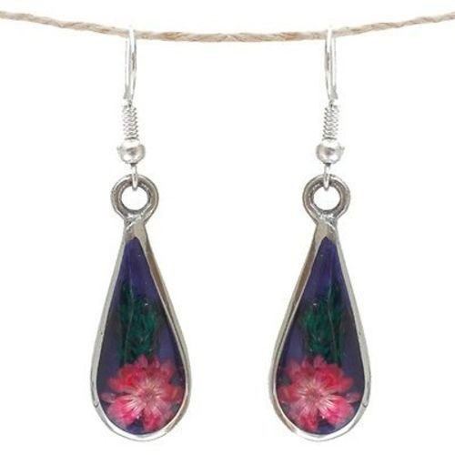 Red Flower Drop Earrings - Artisana **|**|** Teardrop-shaped silver holds actual flowers frozen in clear resin. These earrings hang 1.25 inches from hypoallergenic hooks. #MJSENFR_Red_229007
