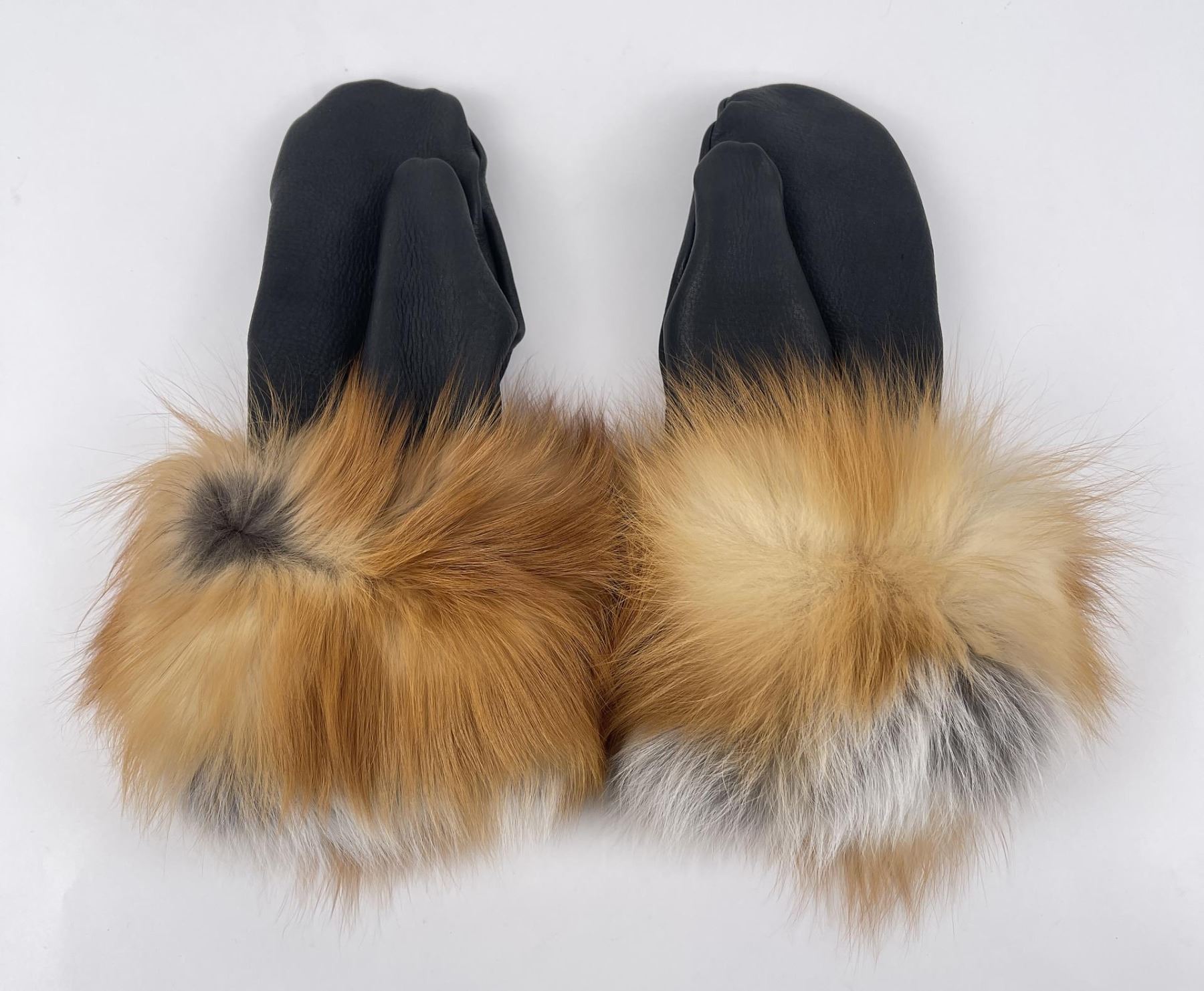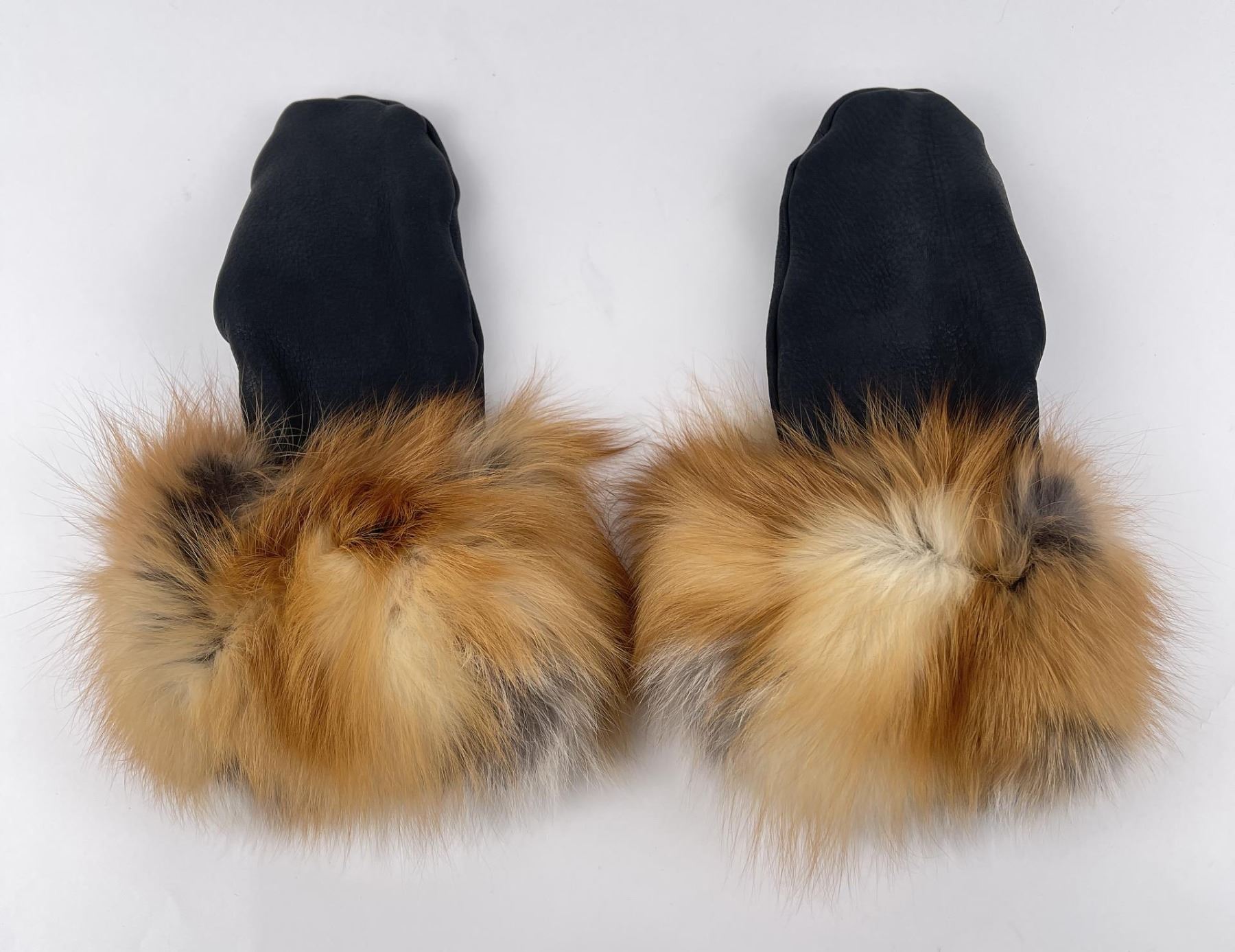 New/Unused. Deer hide leather with Red Fox Fur Cuffs.