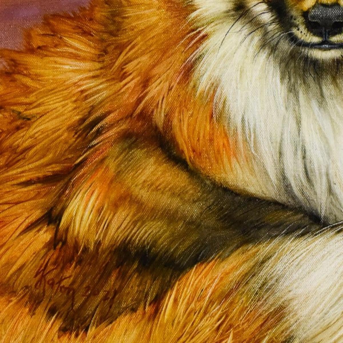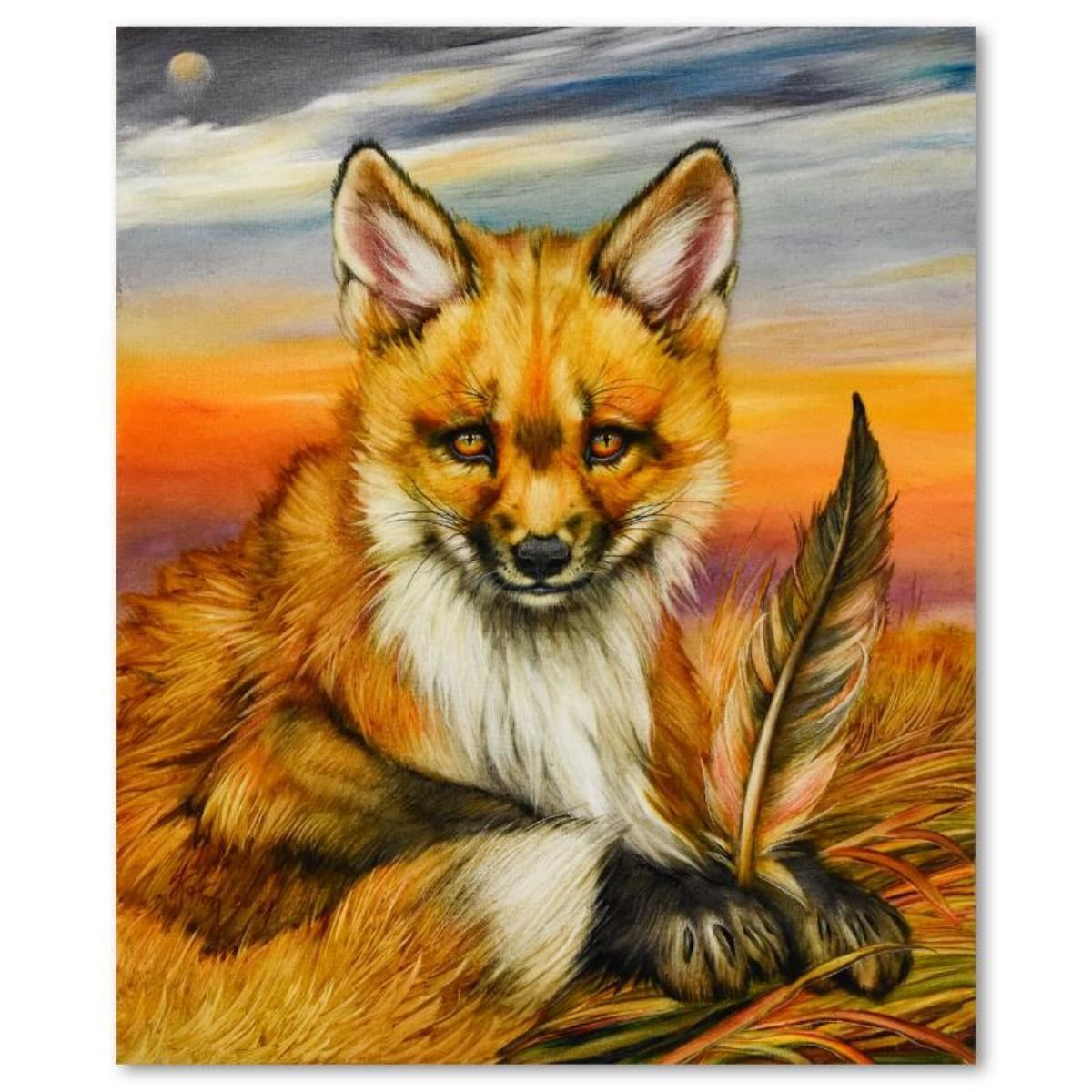 "Red Fox Pup and Feather" is an original oil painting on stretched canvas by Martin Katon, hand signed by the artist. Includes Letter of Authenticity. Measures approx. 20" x 24" (image).