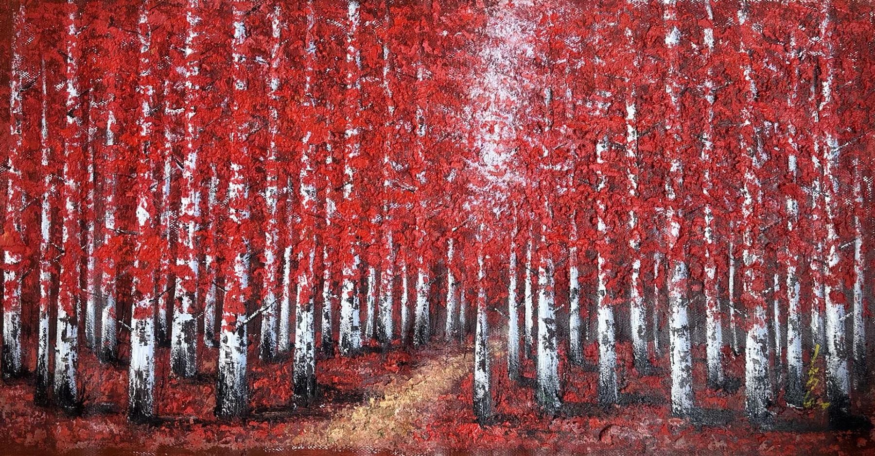 A stunning landscape in the classic impressionist style, with heavy impasto, by world renowned artist Inam. 26"x49" original on canvas, with COA