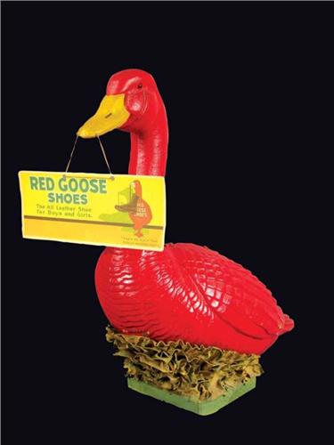 Rare Red Goose Shoes Mechanical Display, goose head goes up and down. Excellent working condition. 11 X 22 X 24 inches.