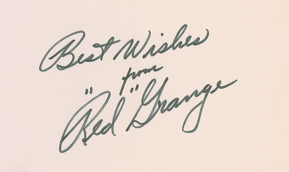Felt tip signature, “Best wishes from ‘Red’ Grange,” on an off-white 5 x 3 card. In fine condition.