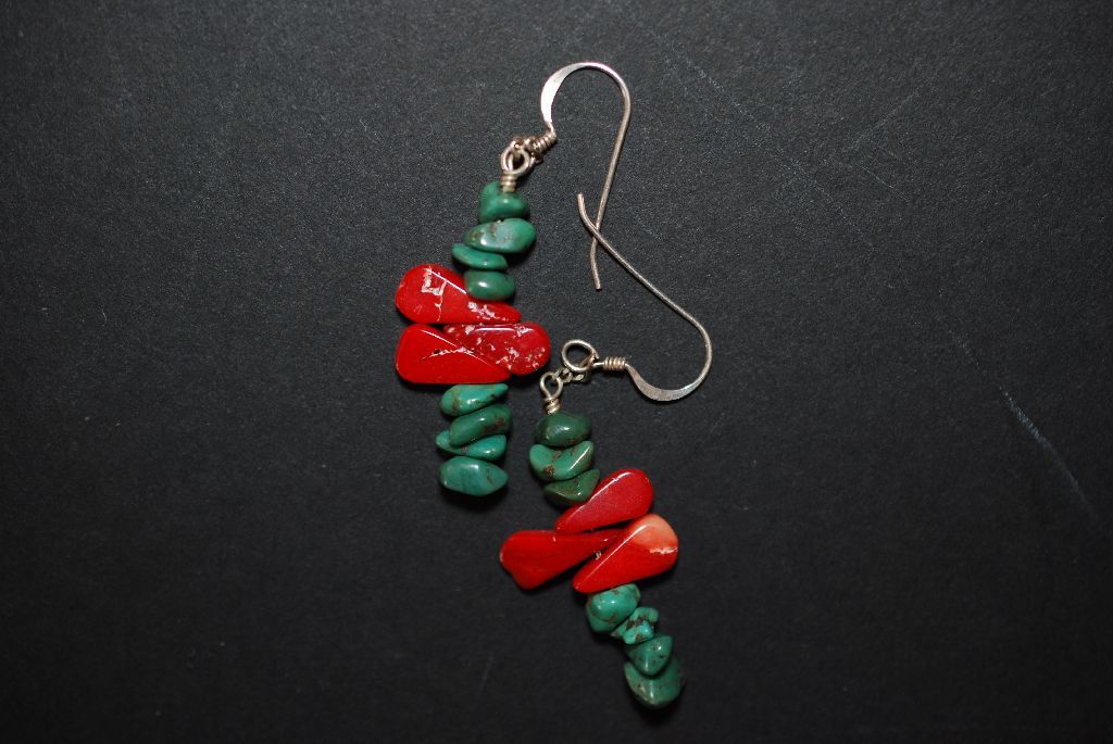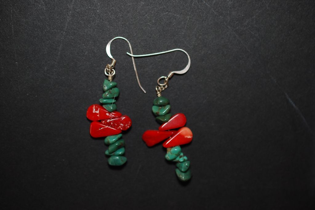 Red & Green Stone Drop Earring Set; EST. $5-10