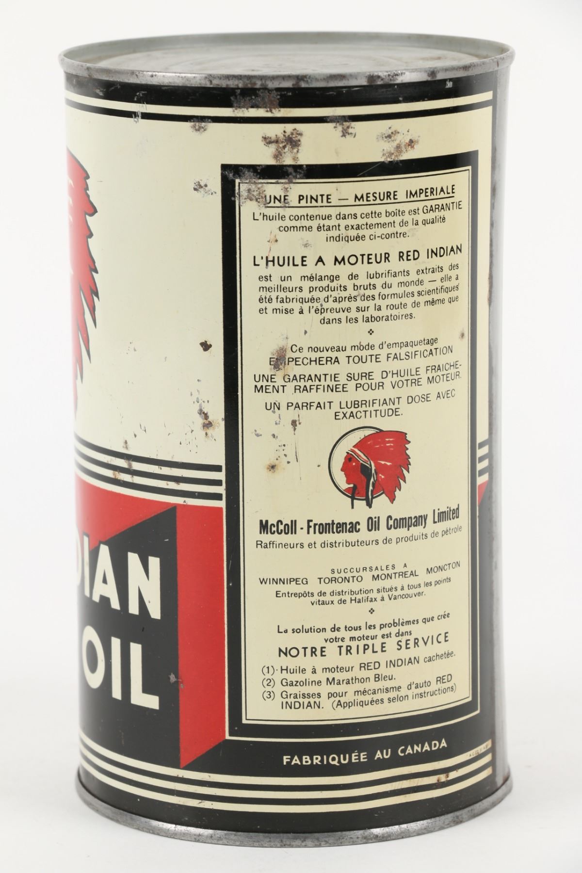 One (1) Imperial quart. Canadian. McColl-Frontenac Oil Company. Minor edge wear to base. $300-500.