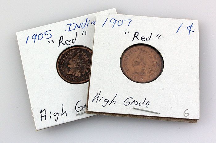 Red Indian Pennies (1905 & 1907) High Grade - 2 pcs. **|**|** Red Indian Pennies (1905 & 1907) High Grade - 2 pcs. ; MSRP: $0