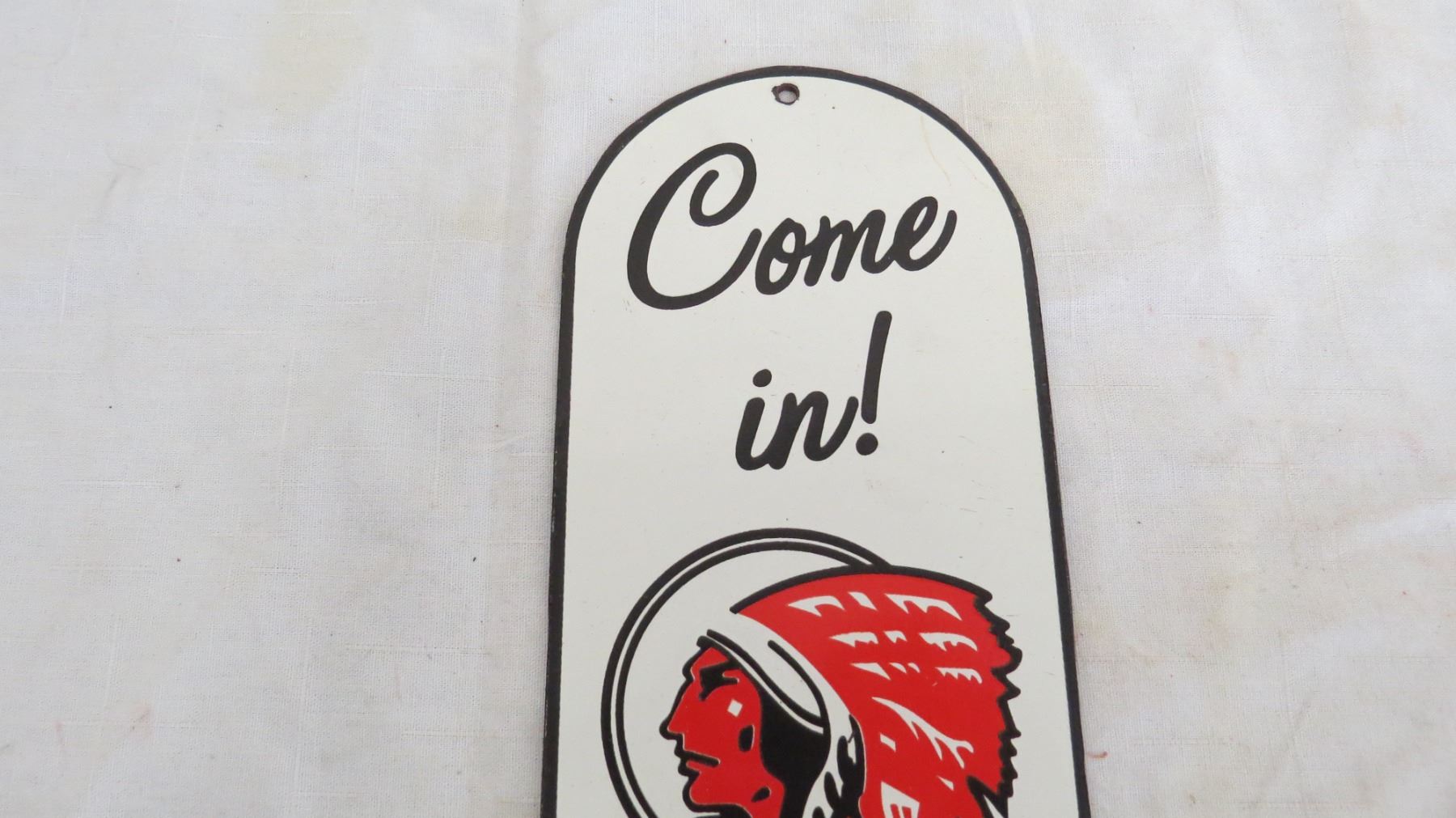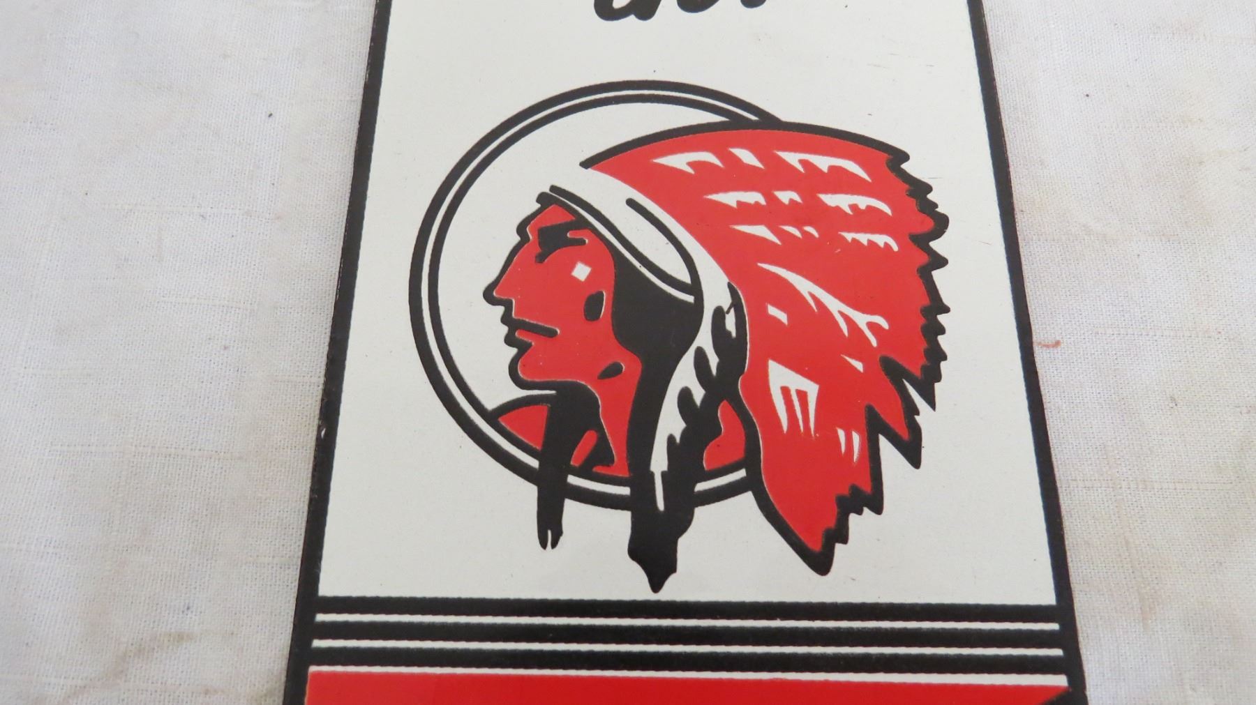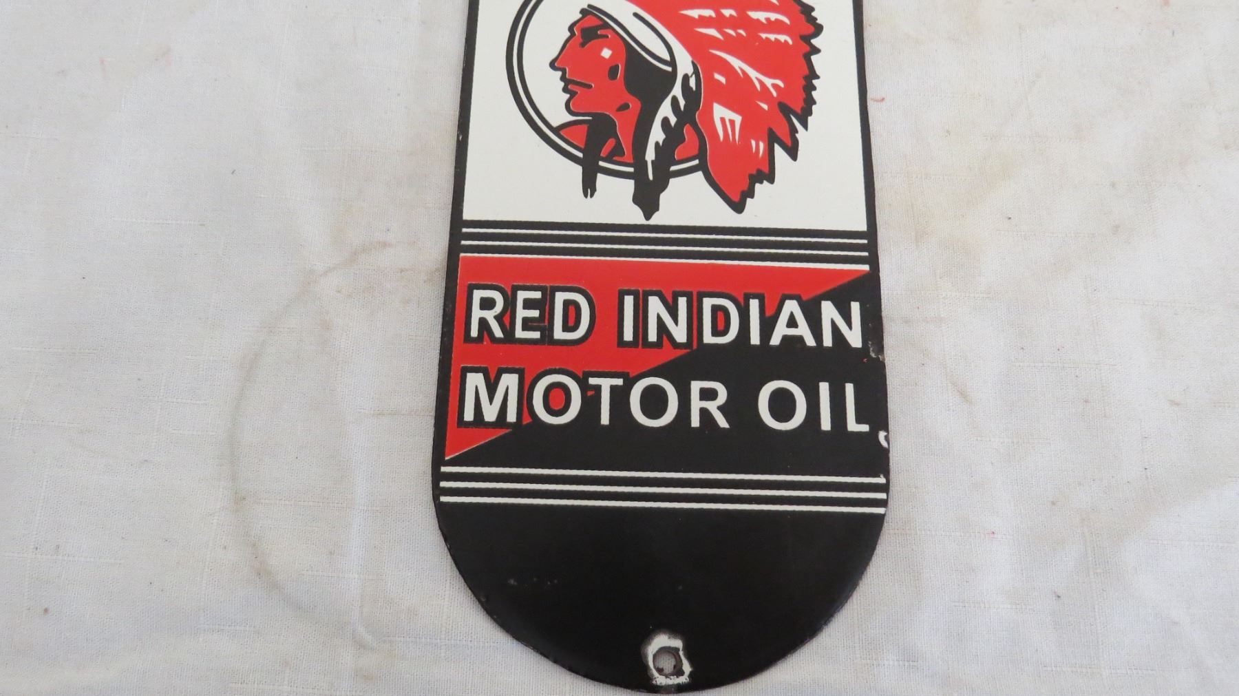 Red Indian motor oil porcelain door push - 4" x 12"