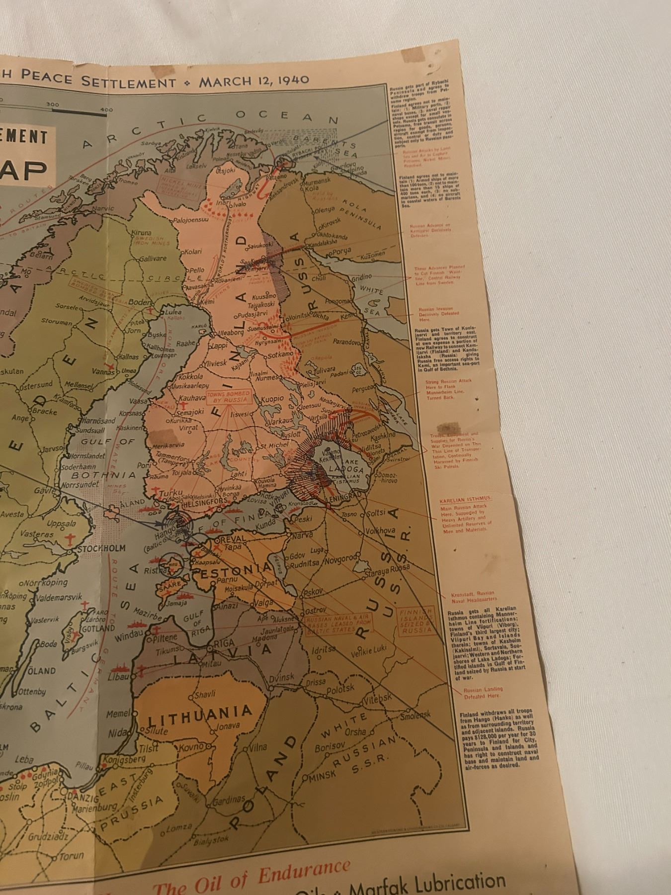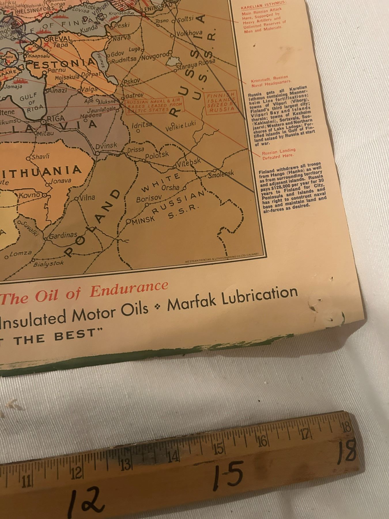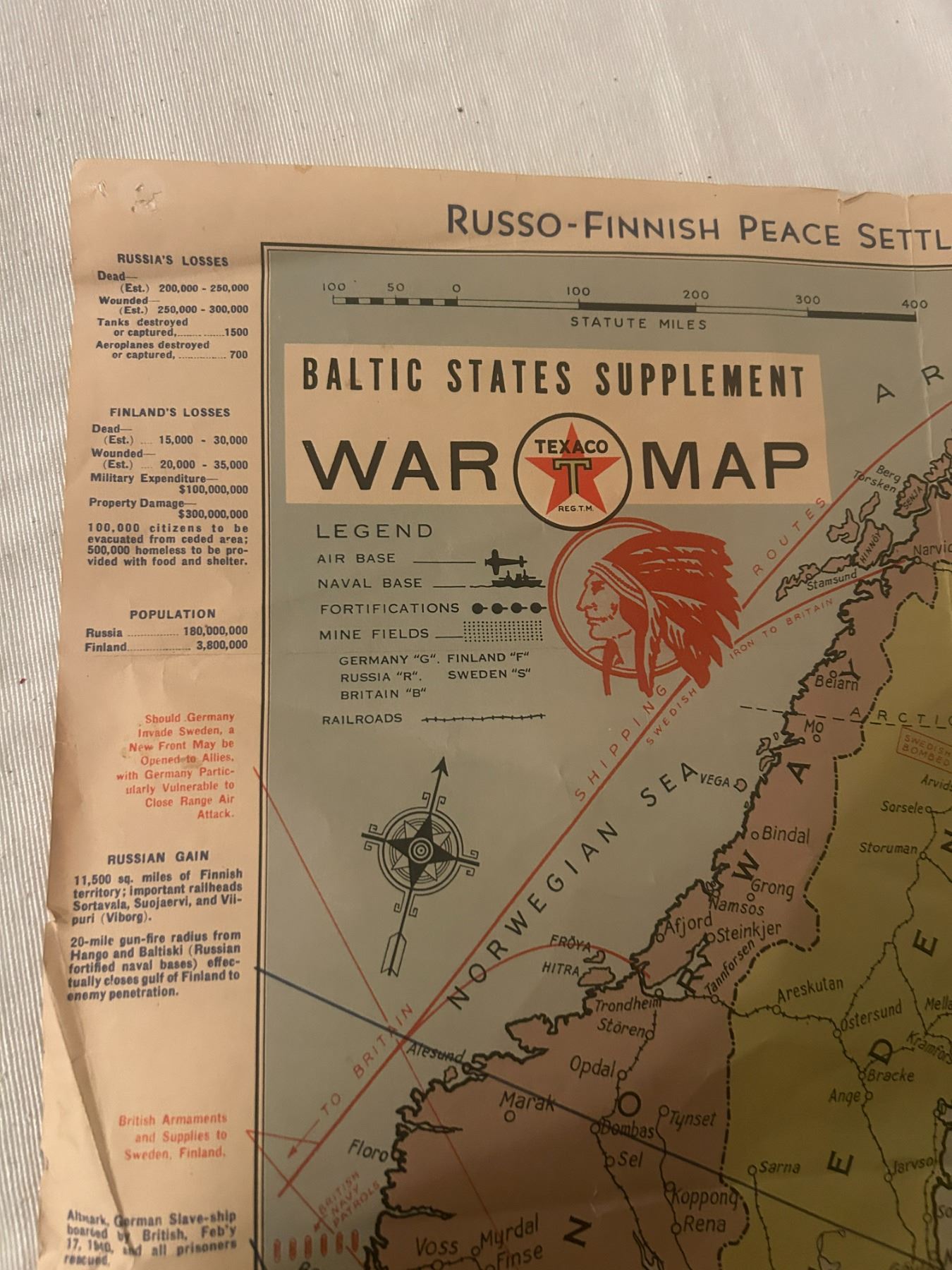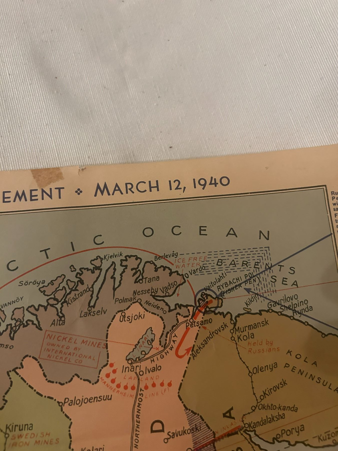 Red Indian war map - March 12/1940, very rare, 18"x20", should be framed