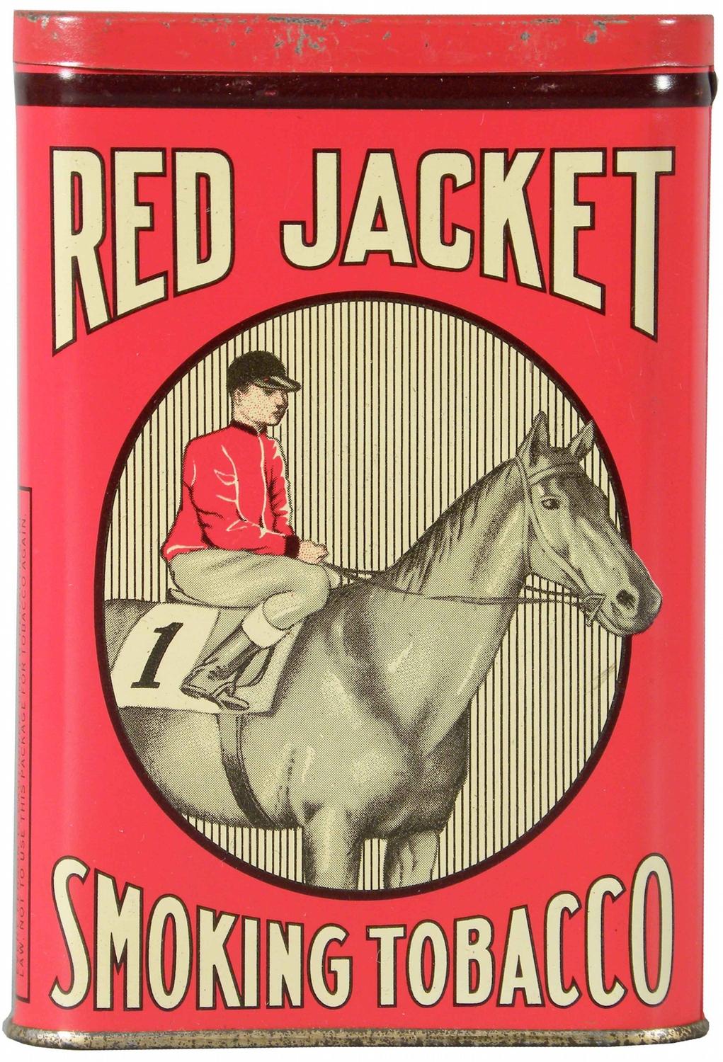 Red Jacket Pipe and Cigarette Tobacco Pocket Tin. B. Payn's Son's Tobacco. Co. Albany, NY. Tiny paint loss on lid otherwise near mint condition.