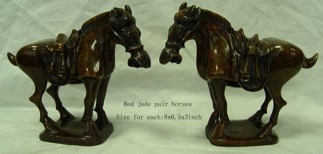 Pair of Hand carved Red Jade Horses 8x 6.5 x 3 inches