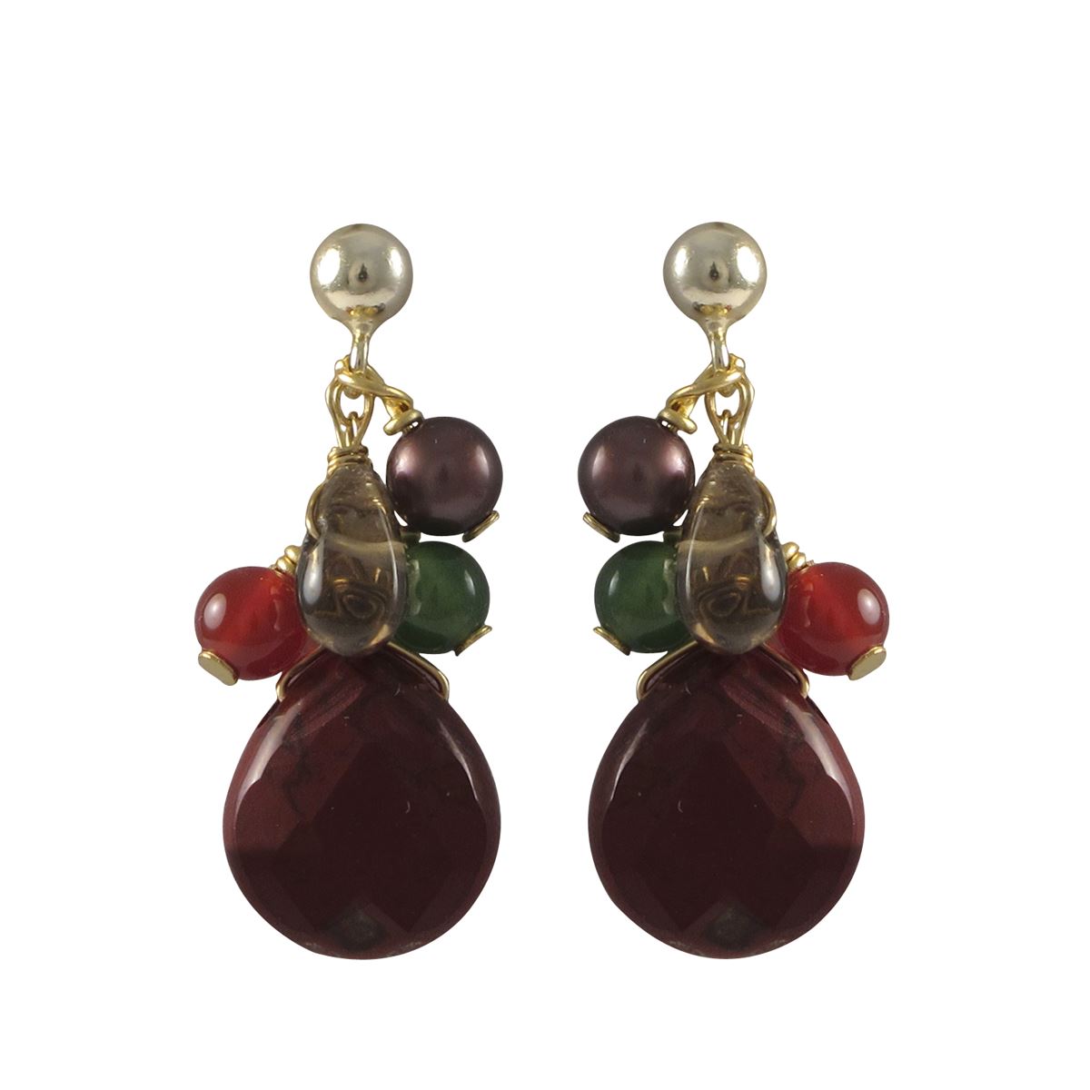 Red Jasper Combination Semi Precious Stones On Gold Filled Post Earrings, 1.18