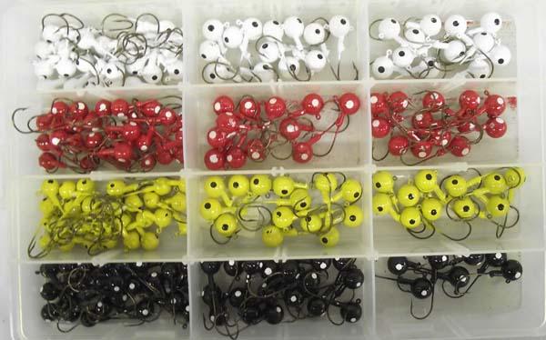 Collection of Red Jig Heads Plus. 1/2 oz. to 3/4 oz. All in plastic box. Buyers Pay Actual Shipping and Handling Charges(see terms and conditions for more information).