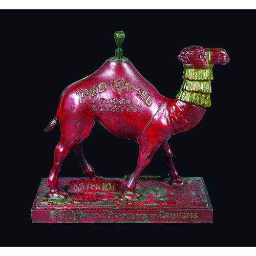 Red Kamel, Camel, Turkish Cigarette Lighter. Base says sell without premiums or coupons. Appears to be white metal. Most original paint intact. Very good original condition 8 1/4 x 8 1/2 x 3 1/2 inches.