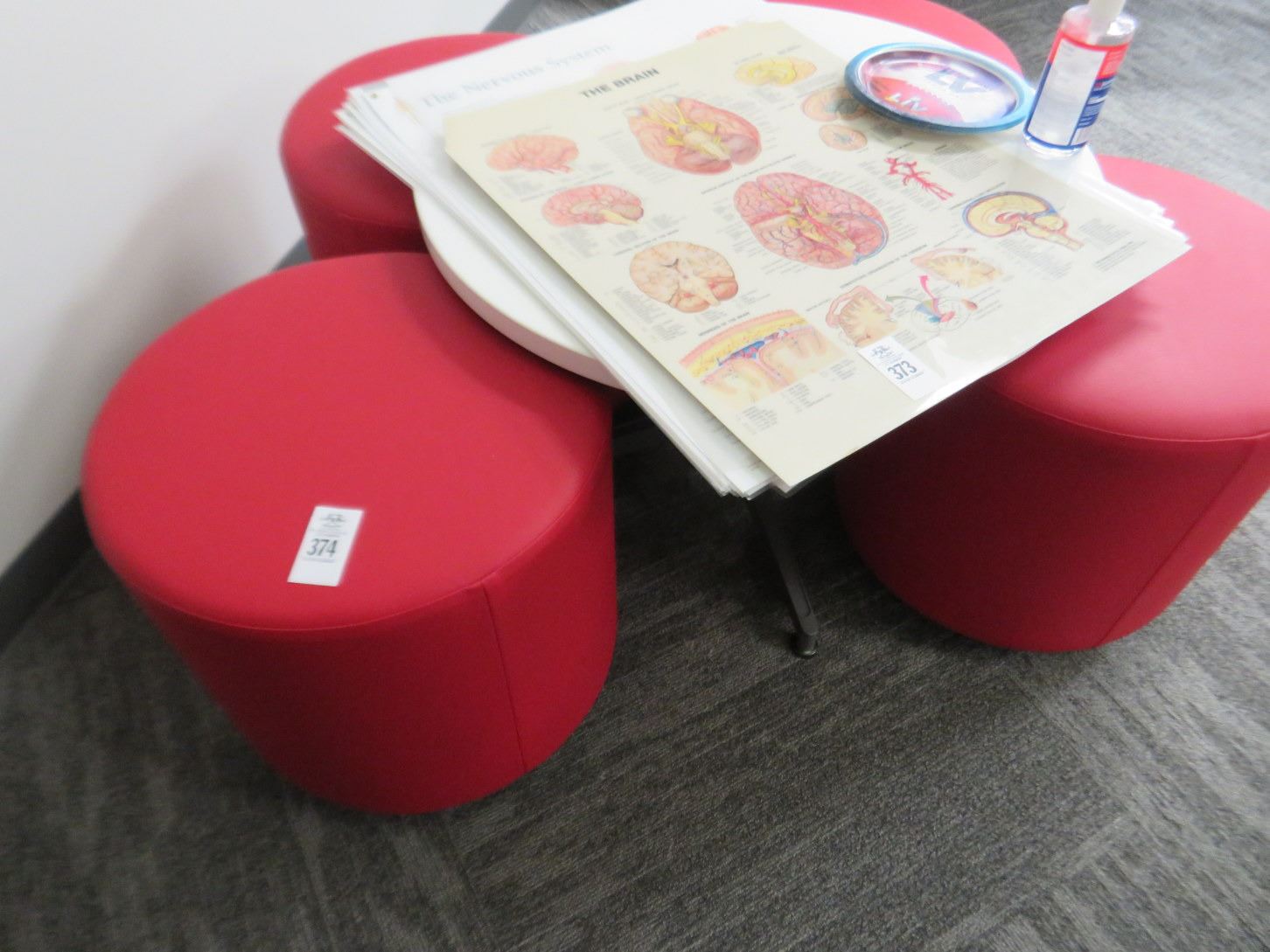 Red Leather Stools (4) w/White Round Table