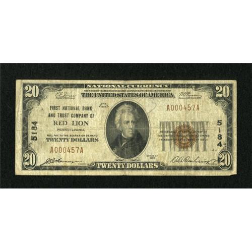 Red Lion, PA - $20 1929 Ty. 1 First NB & TC Ch.