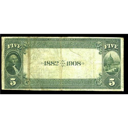 <B>Red Lion, PA</B></I> - $5 1882 Date Back Fr. 537 <B>The Red Lion First NB</B></I> Ch. # (E)5184<BR>A just plain rare early York County example which is the only Date Back reported from here to date. In fact the new Kelly census lists just one low grade Brown Back and one Value Back as the sole early notes recorded from here. Pen signed <B>Fine-Very Fine,</B></I> a scarce and attractive note worthy of a strong bid.