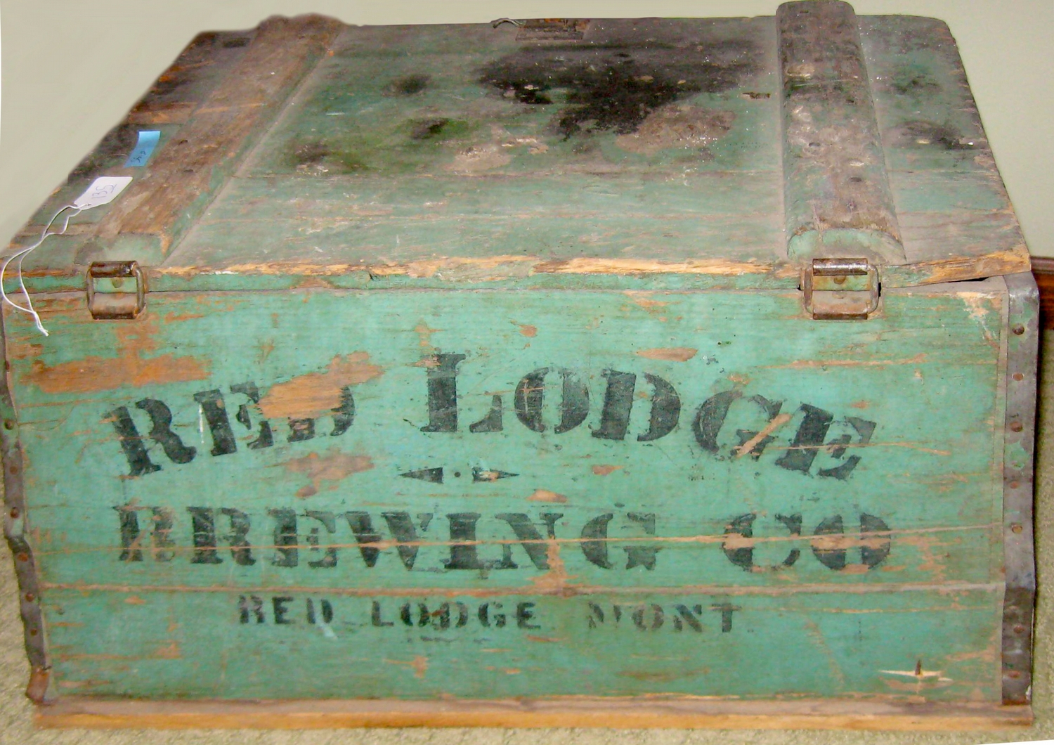 green w/black lettering , 13” h x 24” l x 15 ½” w, brewery started in 1910.