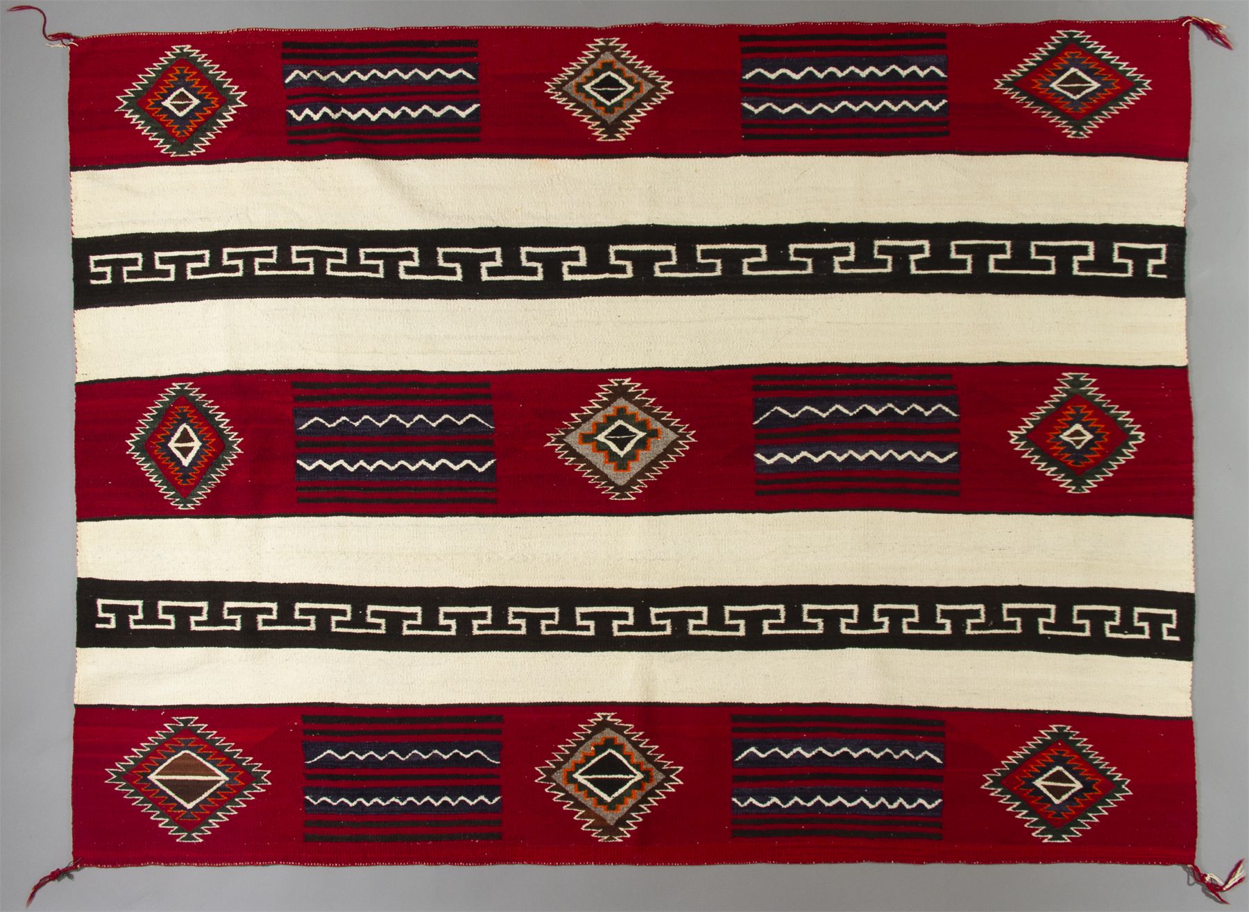 Early chief's weaving from the Red Mesa region of Navajo nation, which is seven miles from Teec Pos Nos resulting in mixed designs; has an awesome design with vibrant colors with great wool.