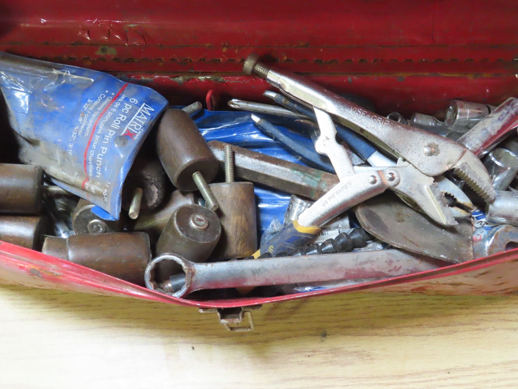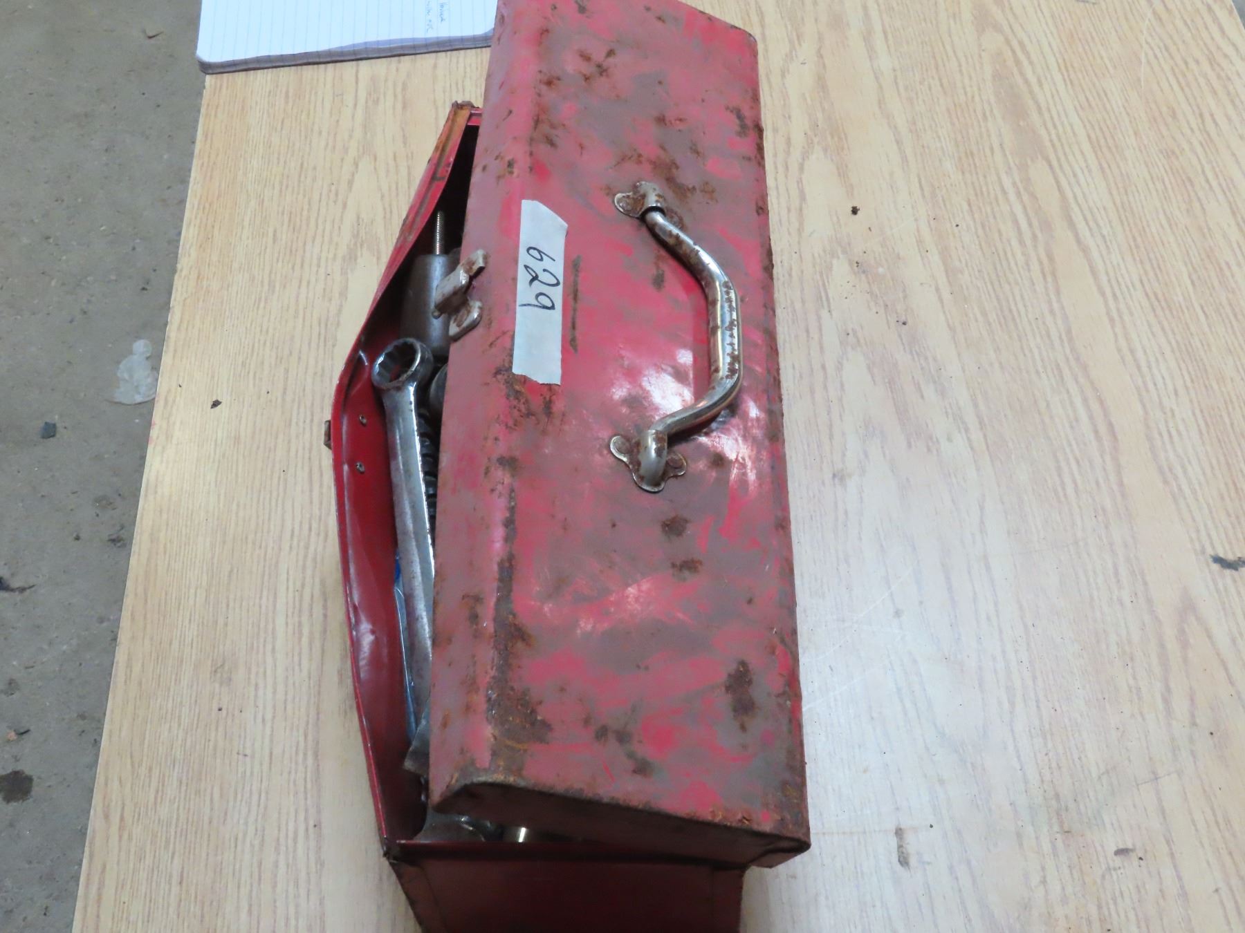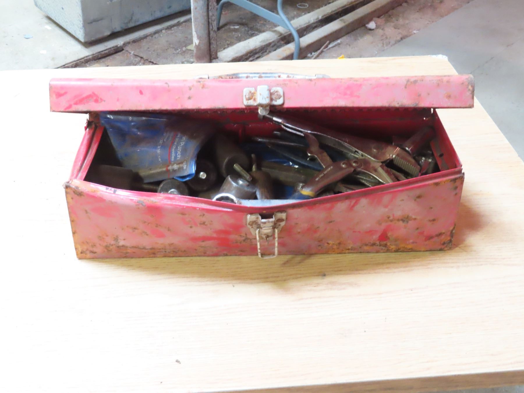 Red - Metal Carry Tool Box (Bent) Filled with Misc Tools