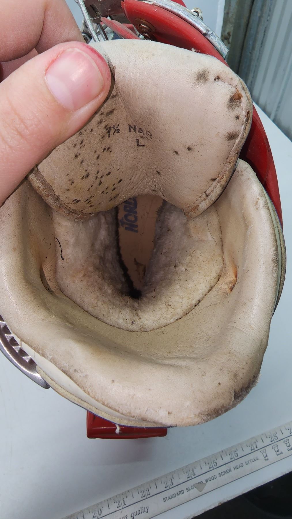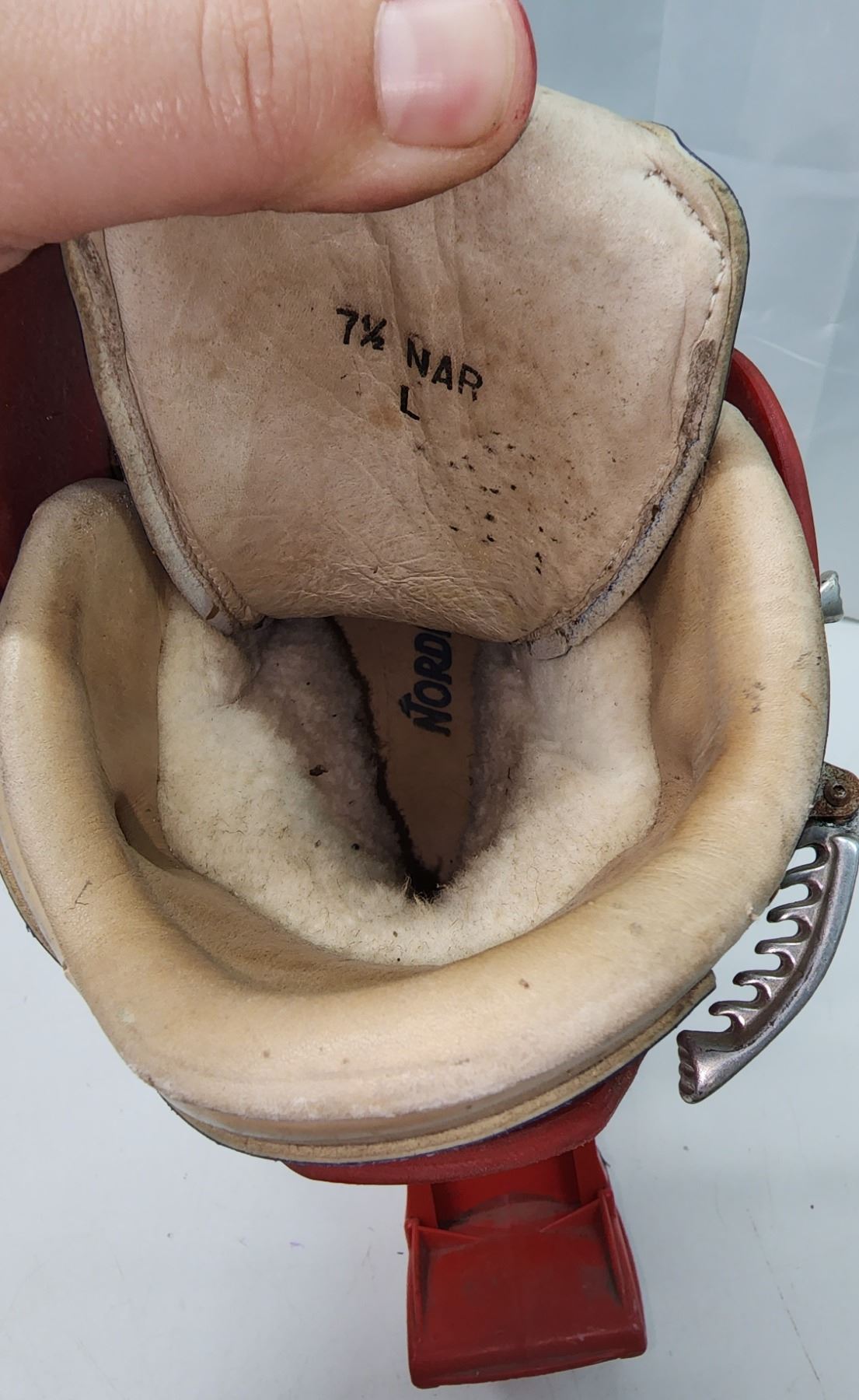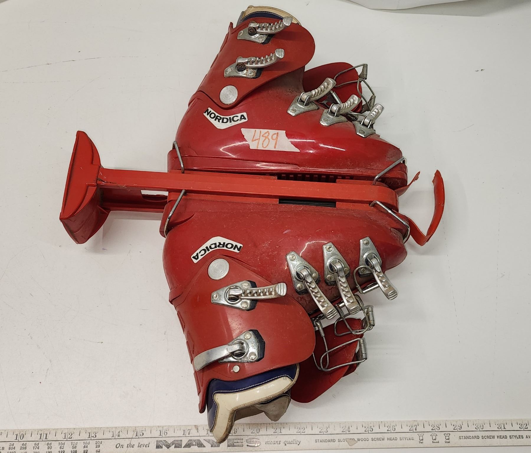Red "Nordica" skii boots, with boot clip - sz 7 1/2