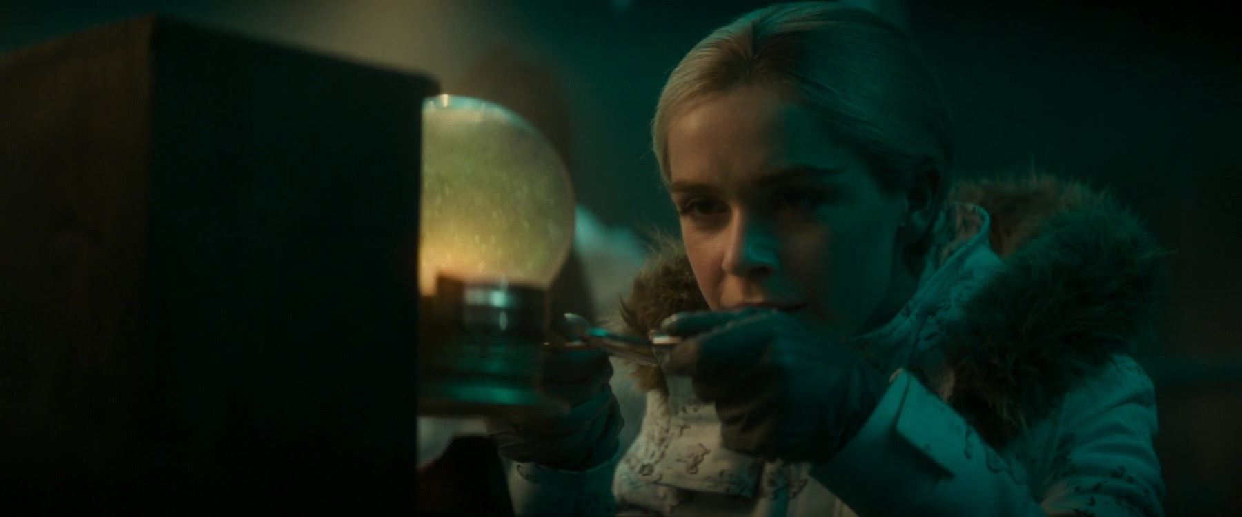 An original pair of Snow Globe Tongs used by Kiernan Shipka as Gryla in Amazon Studios’ holiday action-comedy Red One (2024). These distinctive metal tongs were crafted from polished metal with cork-lined gripping pads, the tongs measure 13 inches in length and feature a practical cross-hinge design allowing them to securely hold a standard-sized prop snow globe. Included with the screen-used tongs is a promotional “Snow Globe/Candy Container”, produced as part of a theatrical collaboration between AMC Theatres and M&M’s, which measures 8.25" x 5.5" in diameter and fits perfectly in the prop’s grips, as shown in the attached images.