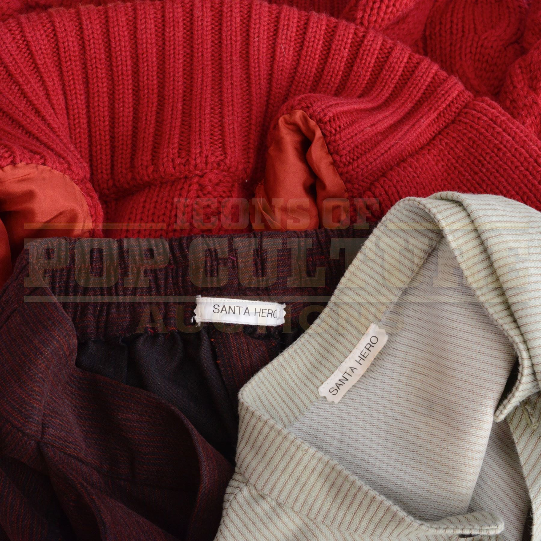 A unique and instantly recognizable wardrobe set from a modern Christmas adventure, ideal for fans of J.K. Simmons, Santa-themed memorabilia, or holiday cinema collectibles.