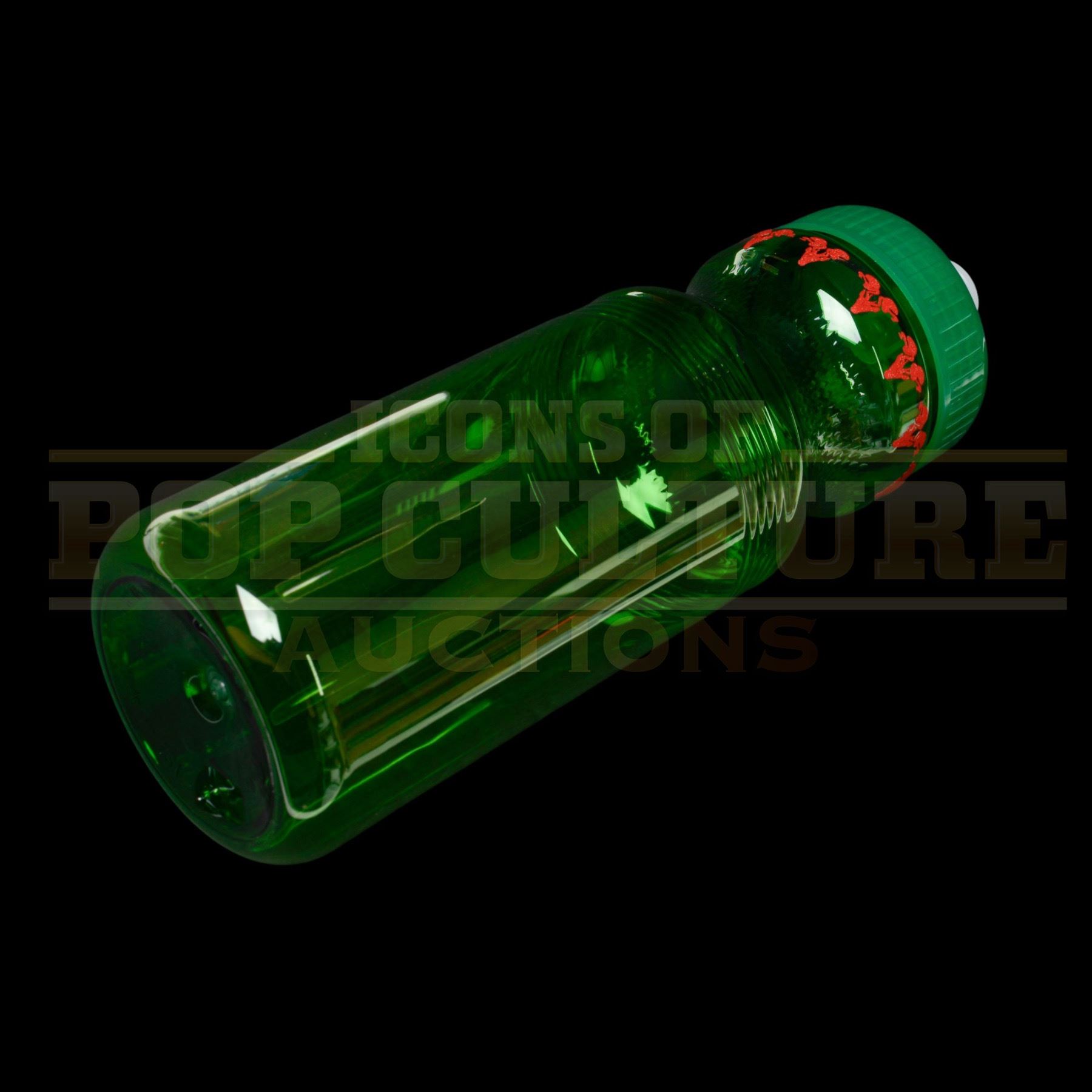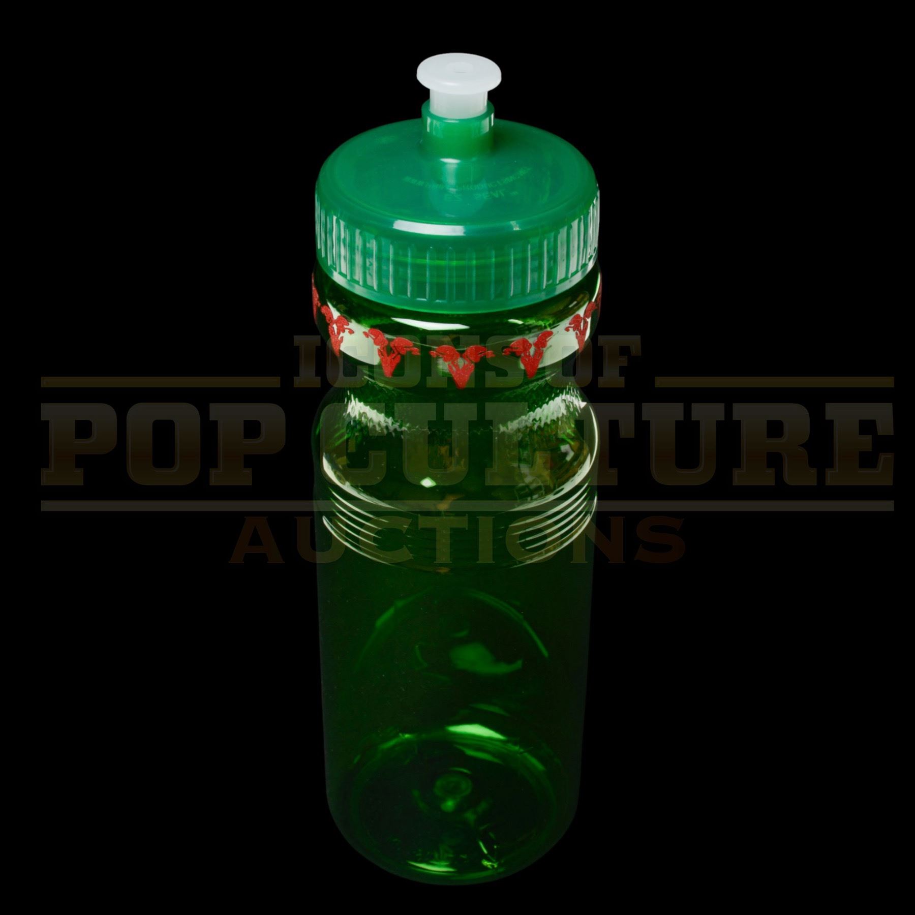 This festive 9" x 3" green plastic water bottle was acquired for use in the holiday action-comedy “Red One.” Designed for use by various actors and as set dressing within Santa’s North Pole Headquarters, the bottle features a bold red wraparound graphic showcasing the film’s iconic reindeer logo, adding a touch of Christmas spirit to even the most utilitarian items on set.