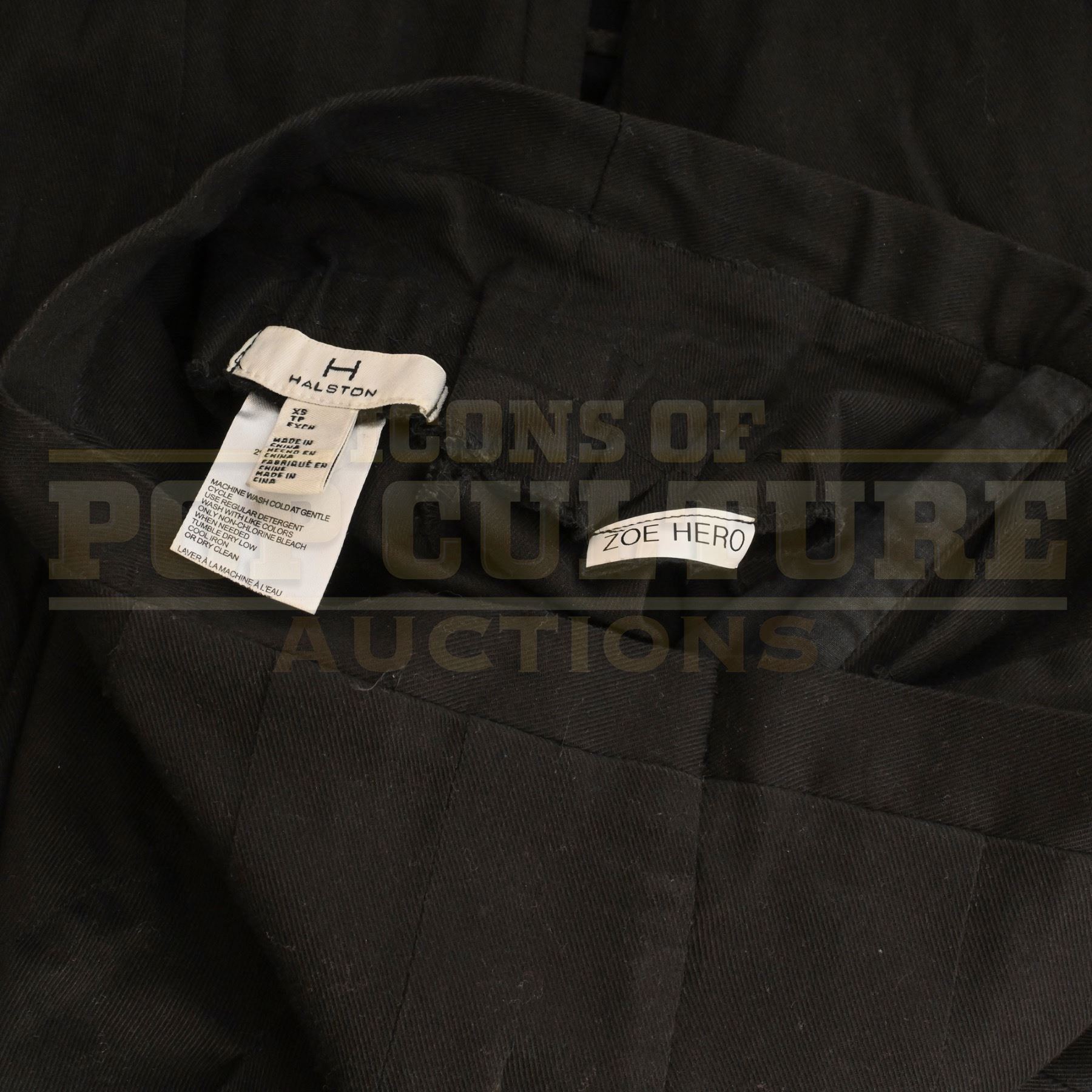 The look is completed with black Halston pants labeled “Zoe Hero,” and a pair of high-heeled black boots that add to the character’s commanding presence. Expertly crafted and detailed, this costume is a standout representation of Zoe’s bold on-screen aesthetic and is instantly recognizable to fans of the film.