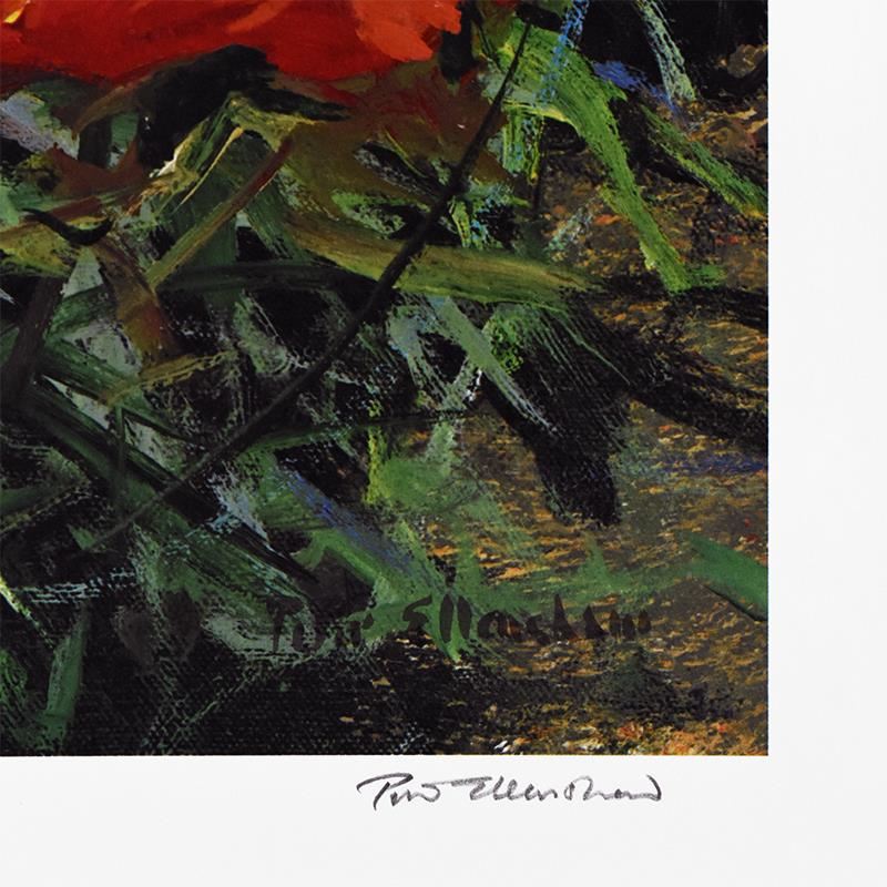 "Red Poppies" is a limited edition lithograph on paper by Peter Ellenshaw (1913-2007) numbered and hand signed by the artist. Includes Letter of Authenticity. Measures approx. 22" x 20.5" (border) 18" x 15.5" (image). Please note: due to the very thin nature of this paper there may be some minor creases.
