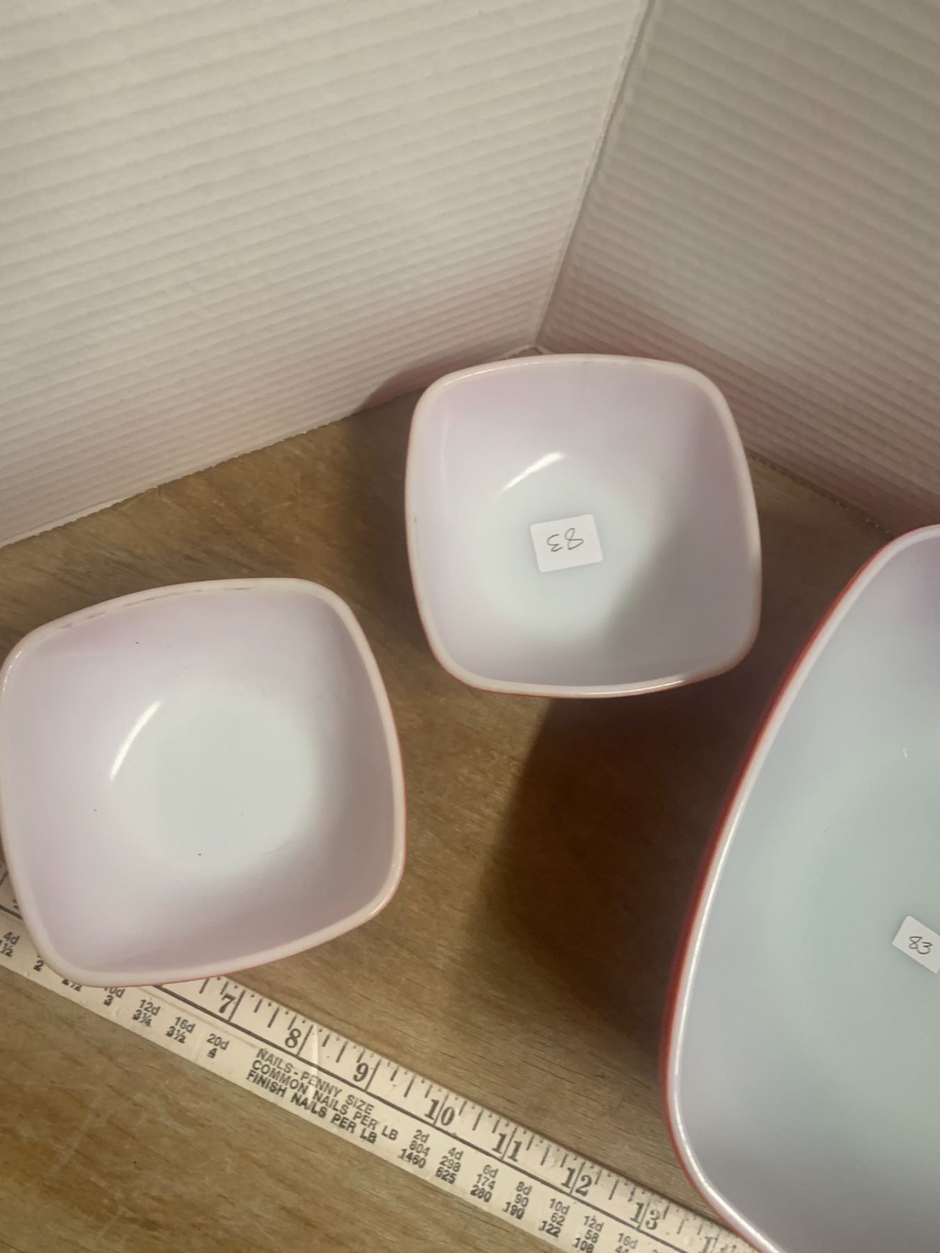 Red Pyrex bowl & 4 Small bowls