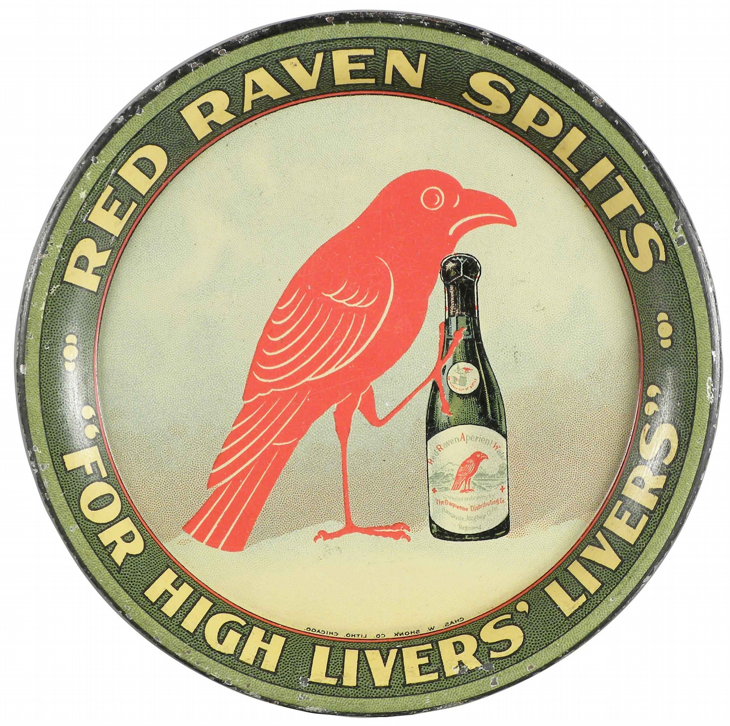 Red Raven Splits Tin Tip Tray. "For High Livers' Livers". Some slight edge ware otherwise excellent condition. 4 1/4 inch diameter.