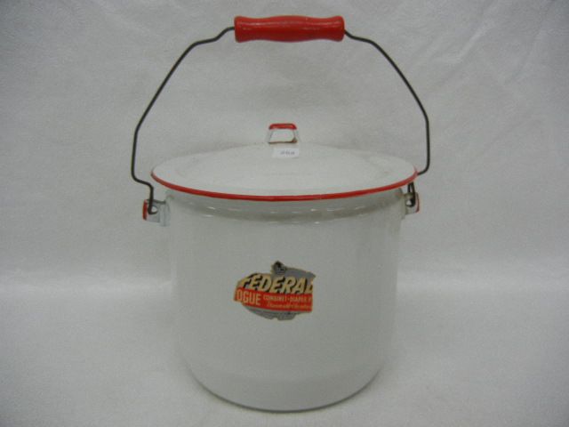 Red Rimmed Enamelware Diaper Pail w/ Lid