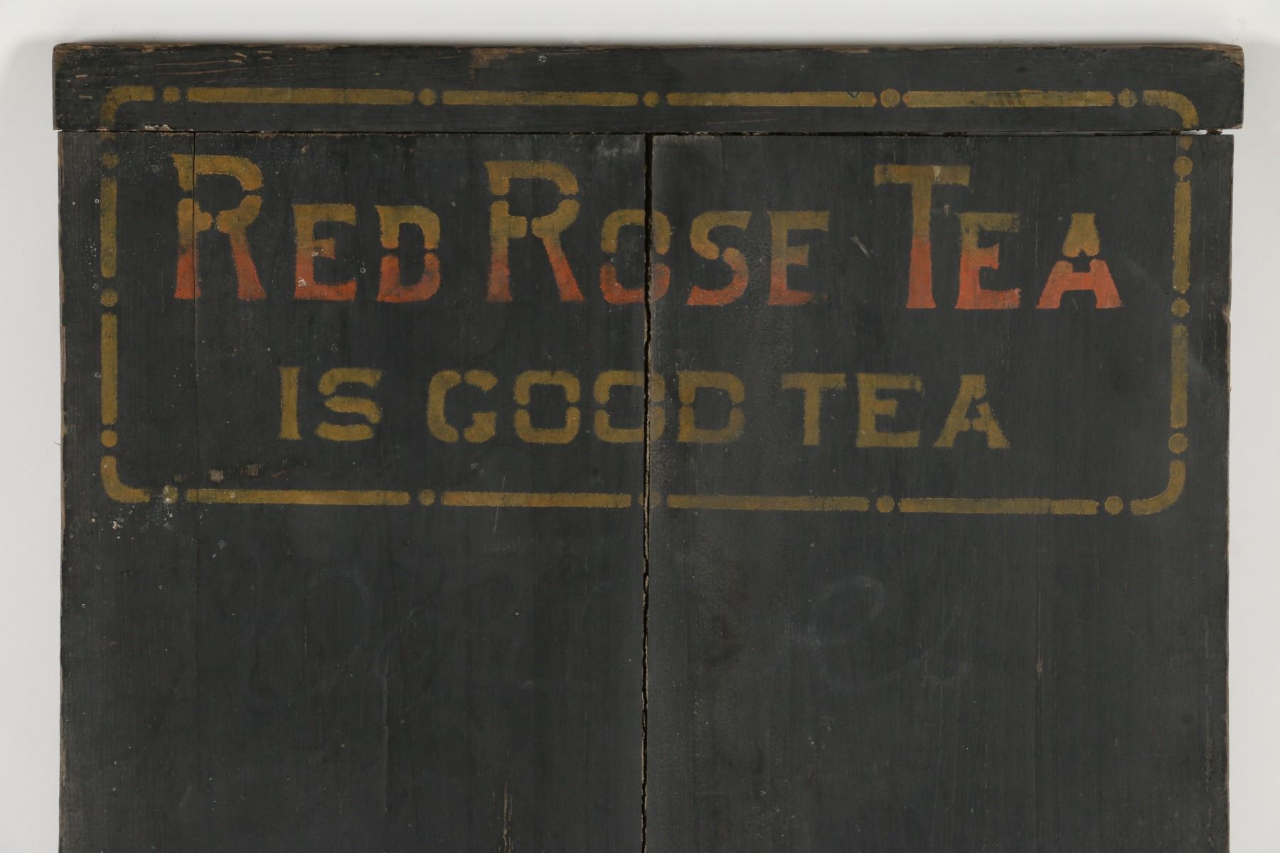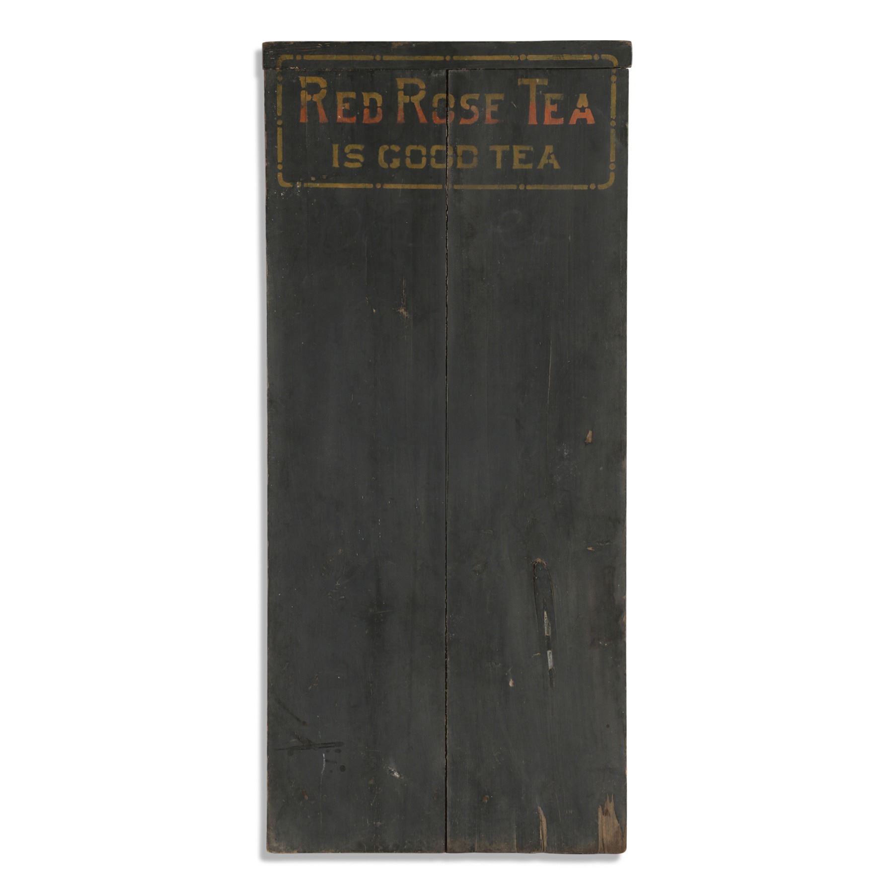 American. 1910s. Red Rose Tea Is Good Tea. 43.75" x 19.5". Minor surface loss (lower right edge), chalkiness. 300-500.