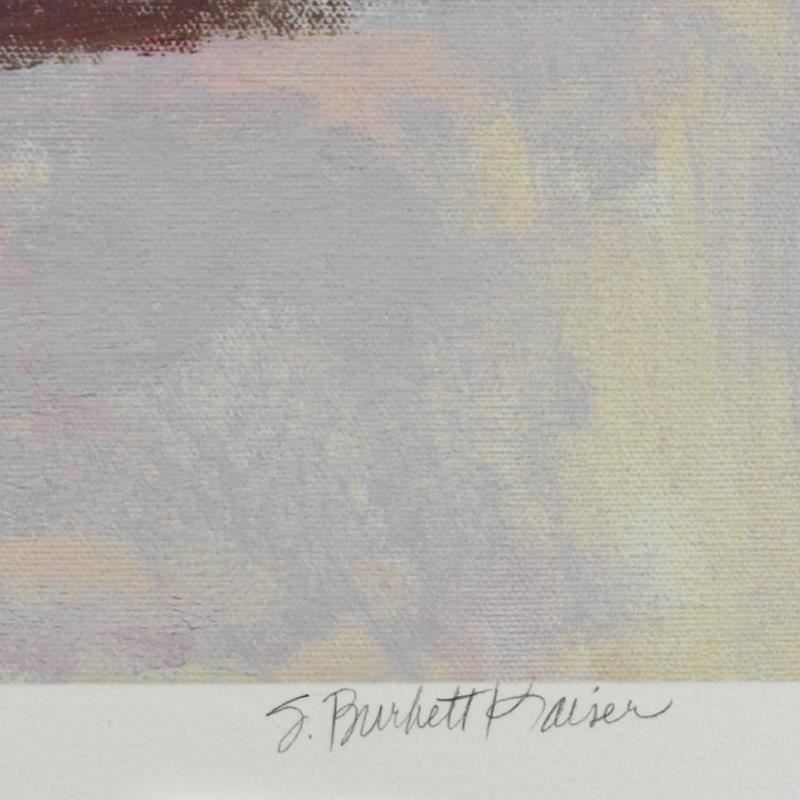 "Morning Petals" is a limited edition giclee on paper by S. Burkett Kaiser, numbered 43/195 and hand signed by the artist. Includes Letter of Authenticity. Measures approx. 29" x 29" (border), 24" x 24" (image).