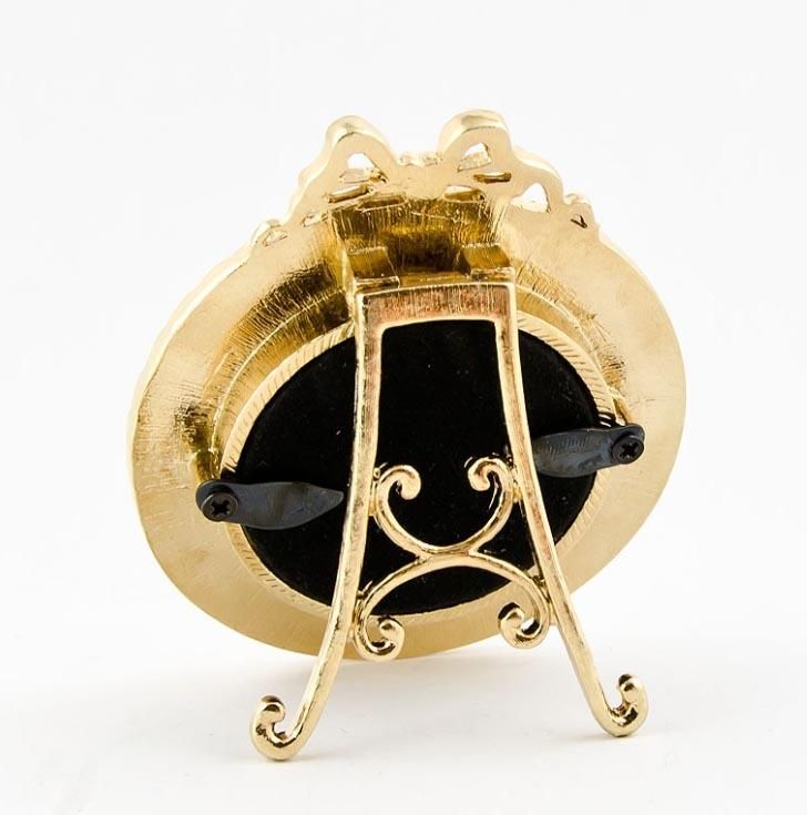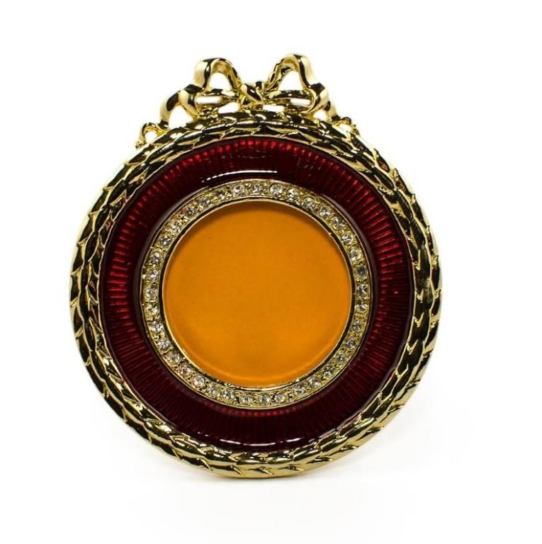 Red Round Enamel Faberge Inspired Frame, measures 3'' (H) x 2.5'' (D) Pewter, Enamel, Crystals
