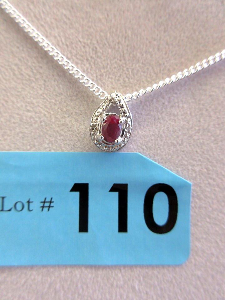 .60 CT Oval center ruby & 2 diamonds. Sterling silver. Includes $340 certificate.