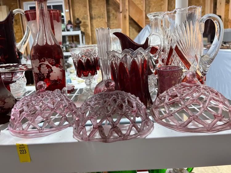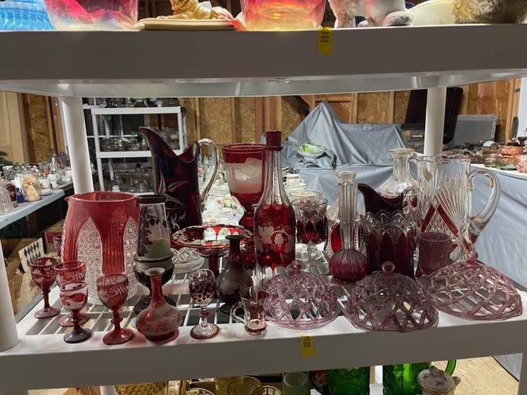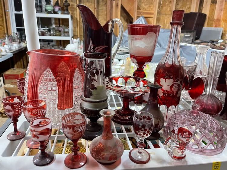 Red Ruby Glass lot including pitchers, vases, goblets, etc., all from the attic collection!