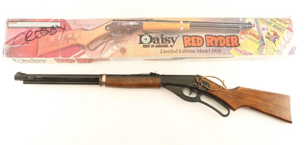 Classic "Red Ryder:" BB rifle. In working order. Good condition except for some scratches on the barrel on the right side under the sight. Comes in the original box.