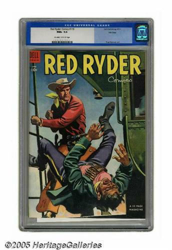 <B>Red Ryder Comics #119 File Copy (Dell, 1953) CGC NM+ 9.6 Off-white to white pages.</B></I> Fred Harman art. Overstreet 2005 NM- 9.2 value = $70. CGC census 3/05: 1 in 9.6, 1 higher.