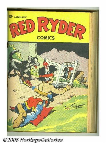 <B>Red Ryder Comics #13-84 Bound Volumes (Dell, 1943-50).</B></I> These are file copies which have been trimmed and bound into six hardcover volumes. Get seven years' worth of Western action with one bid! Approximate Overstreet VG 4.0 value for group = $1,700. <I>From the Random House Archives.</B></I>