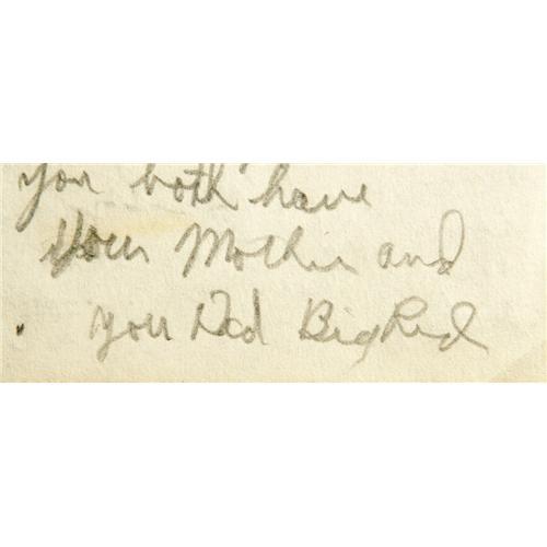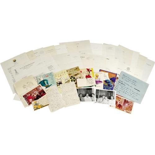 <B>Red Skelton Archive.</B></I> Includes letters dated June 1951, from the mayors of 26 major American cities, acknowledging Skelton's contribution during "Speed Control Month"; 11 birthday cards and a handwritten birthday letter from Skelton to his son Richard (whose death from leukemia at age nine haunted Skelton for the rest of his life); a cherished ink imprint of infant Richard's hand; two color and two b&w snapshots of Skelton with friends and family; and a handwritten letter to his son and daughter dated February 22, 1954. In overall Very Fine to Excellent condition with some mild tanning to the second letter.<BR><BR><b>Shipping:</b> Flat Material, Small (<a target="_blank" href="http://www.heritageauctions.com/common/shipping.php">view shipping information</a>) <BR><BR><B>Important