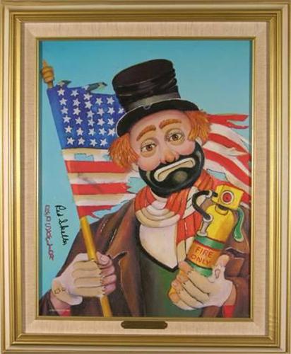 Red Skelton Canvas Transfer - Old Glory, Signed and Sealed, 14x18, Limited Edition 745/5000. Framed.