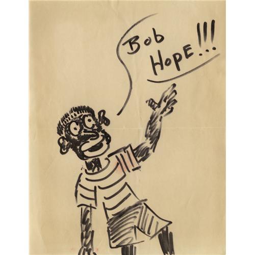<B>Red Skelton Original Drawing.</B></I> A very un-P.C. sketch in black marker on heavy paper by Skelton, with "Bob Hope!!!" written in the word balloon. In Excellent condition.