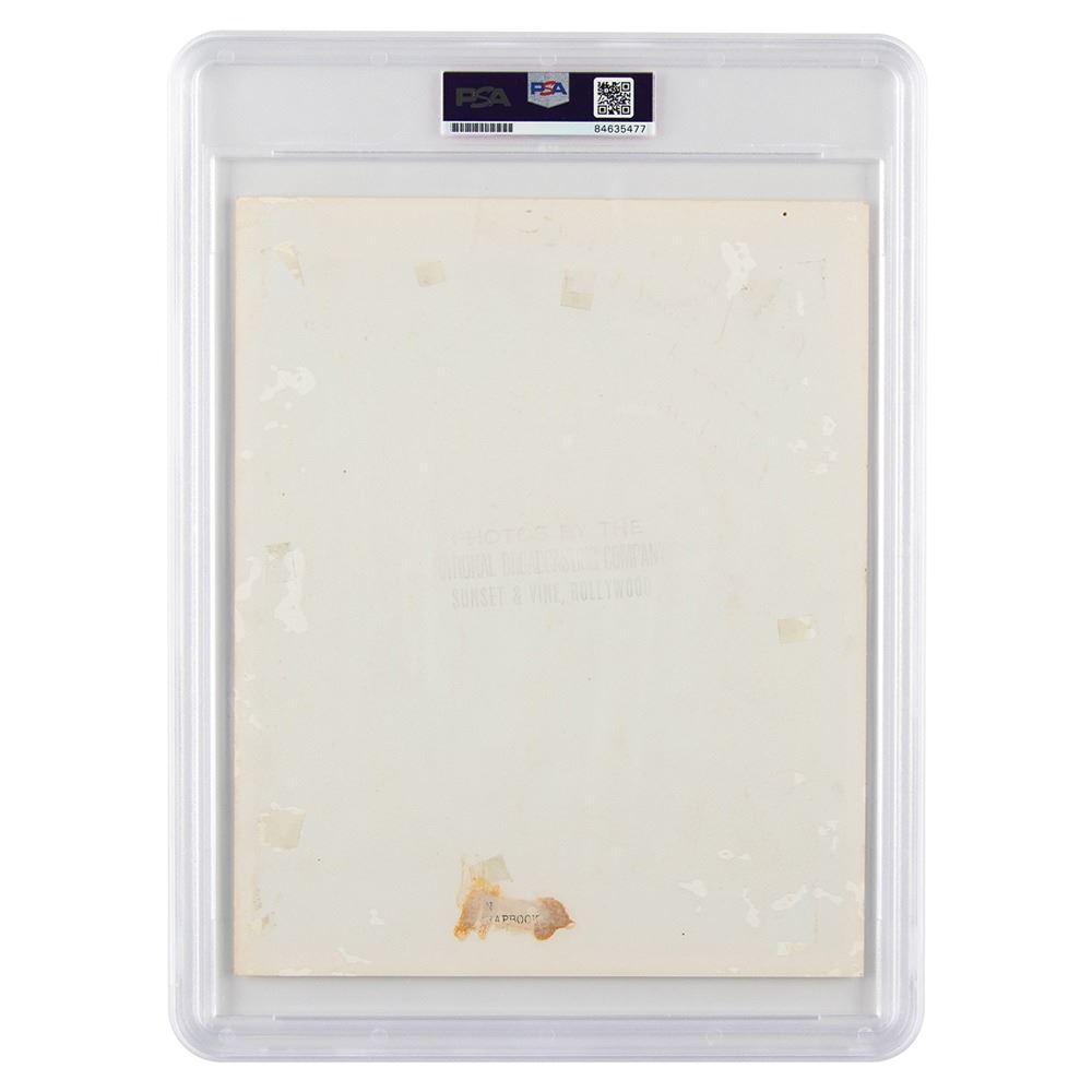Vintage glossy 8 x 10 close-up photo of Red Skelton with an NBC radio microphone, signed and inscribed in purple ink, "Best of luck to Dick a swell fellow, I dood it, Red Skelton.†Reverse bears a National Broadcasting Company photo stamp. In very good to fine condition, with scattered light creasing, and two tack holes to the top border. Encapsulated in a PSA/DNA authentication holder.
