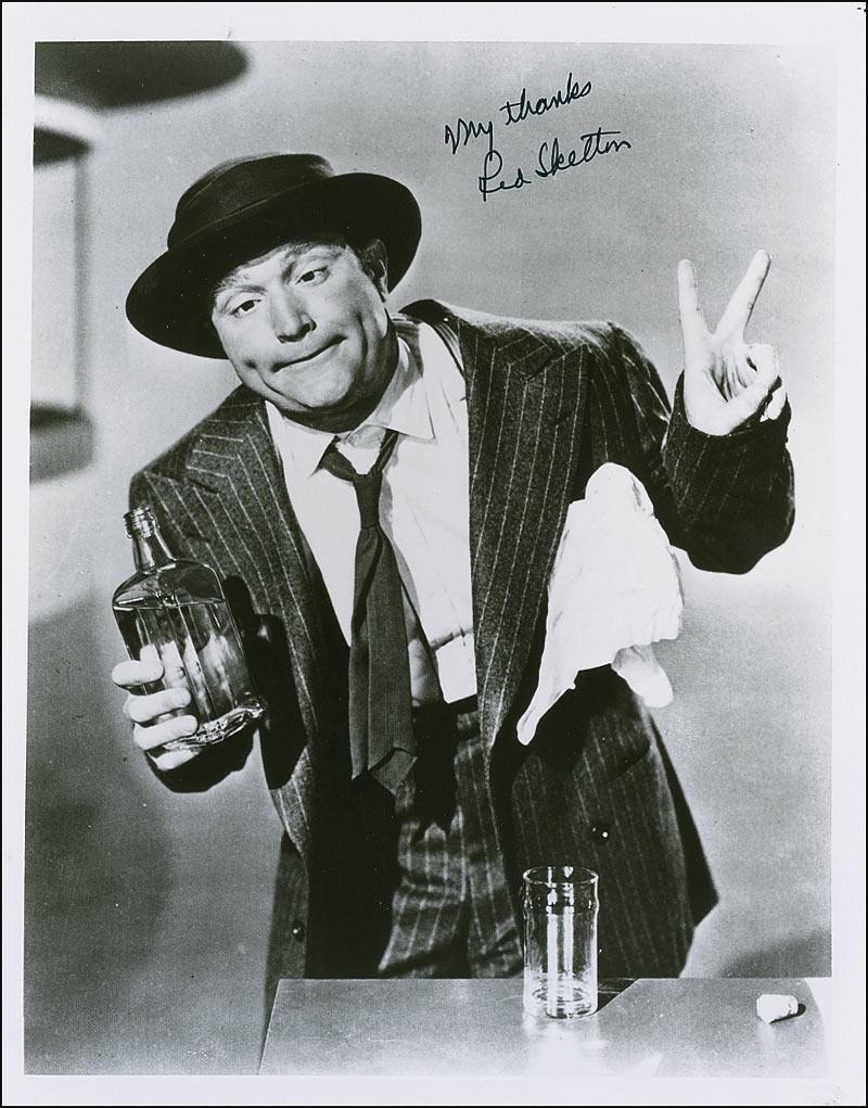 Glossy 8 x 10 photo of Skelton as a drunken character, signed in black felt tip, “My thanks, Red Skelton.” In very fine condition. Pre-certified PSA/DNA and RRAuction COA.