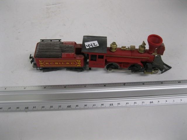 Red Steam Engine with K.C. ST. L.&C. wood car