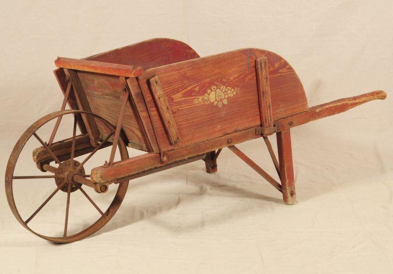 Red Stenciled Wheel Barrow with Cast Iron Wheel