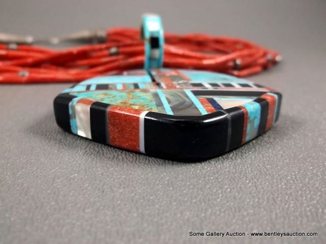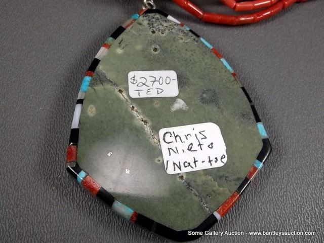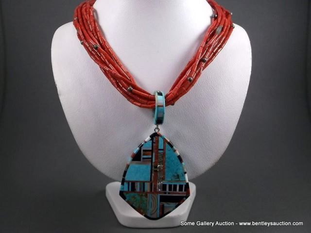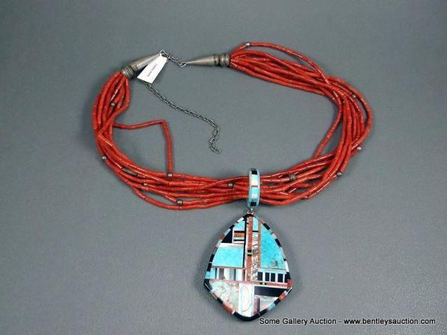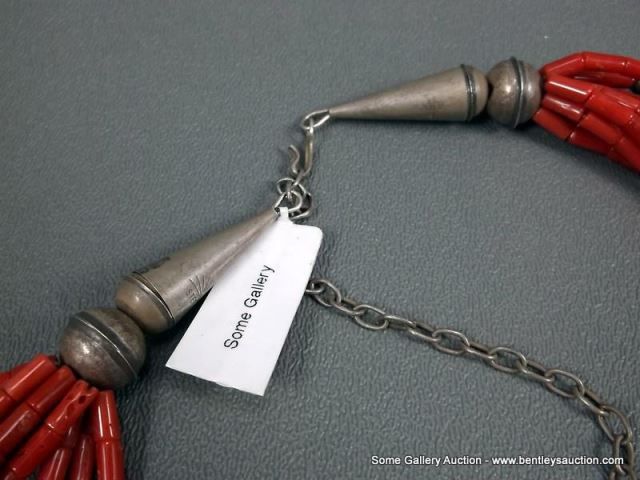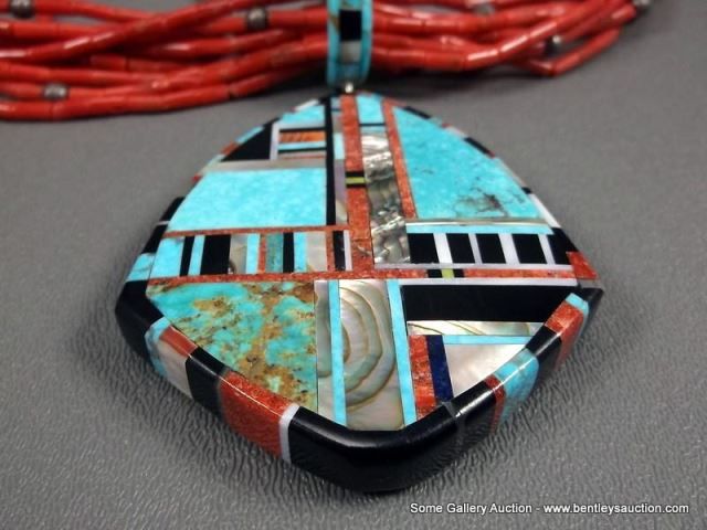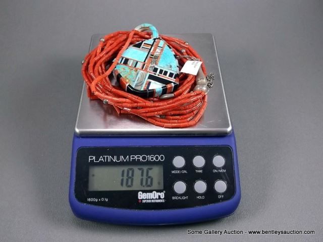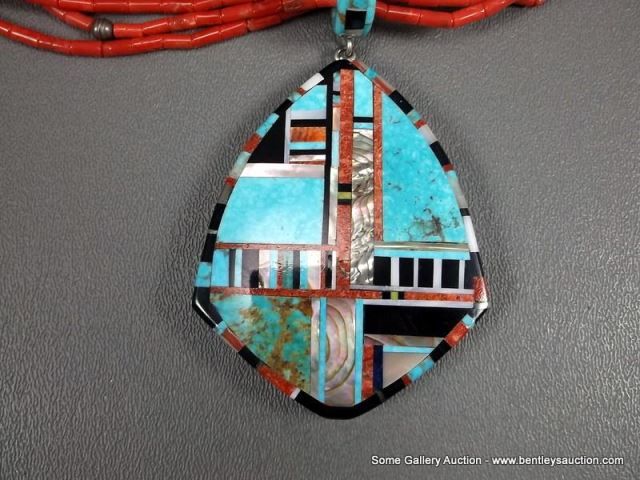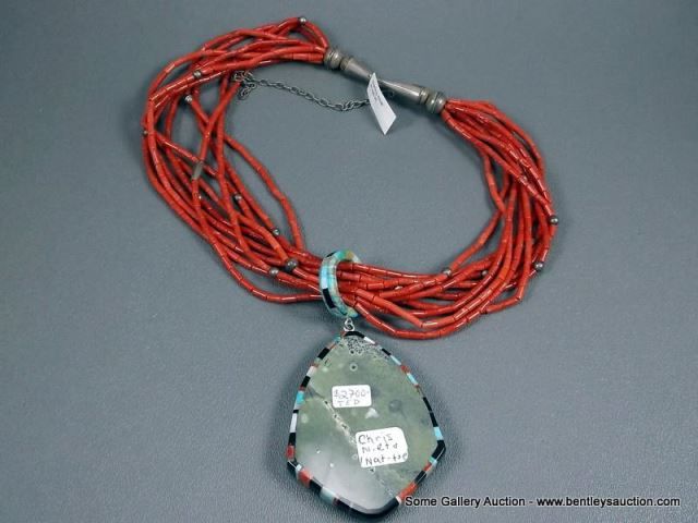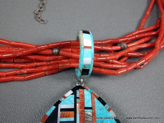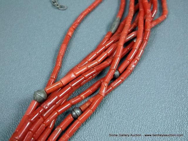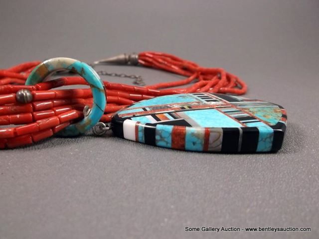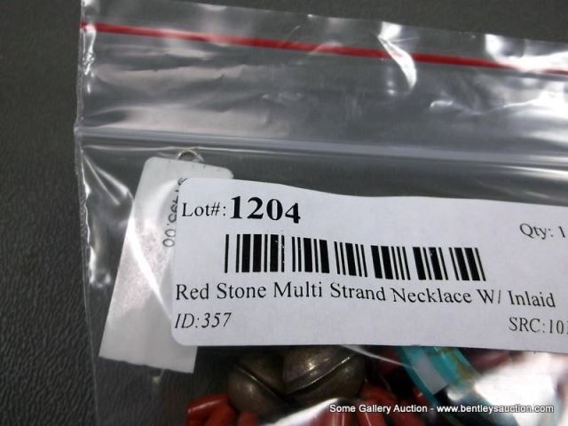 Red Stone Multi Strand Necklace W/ Inlaid Turquoise and Other Stone Weight: 187.6 Grams Retail: $4,1