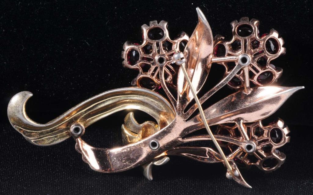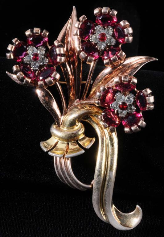 Description Floral design with red and white stones. Condition (Excellent).